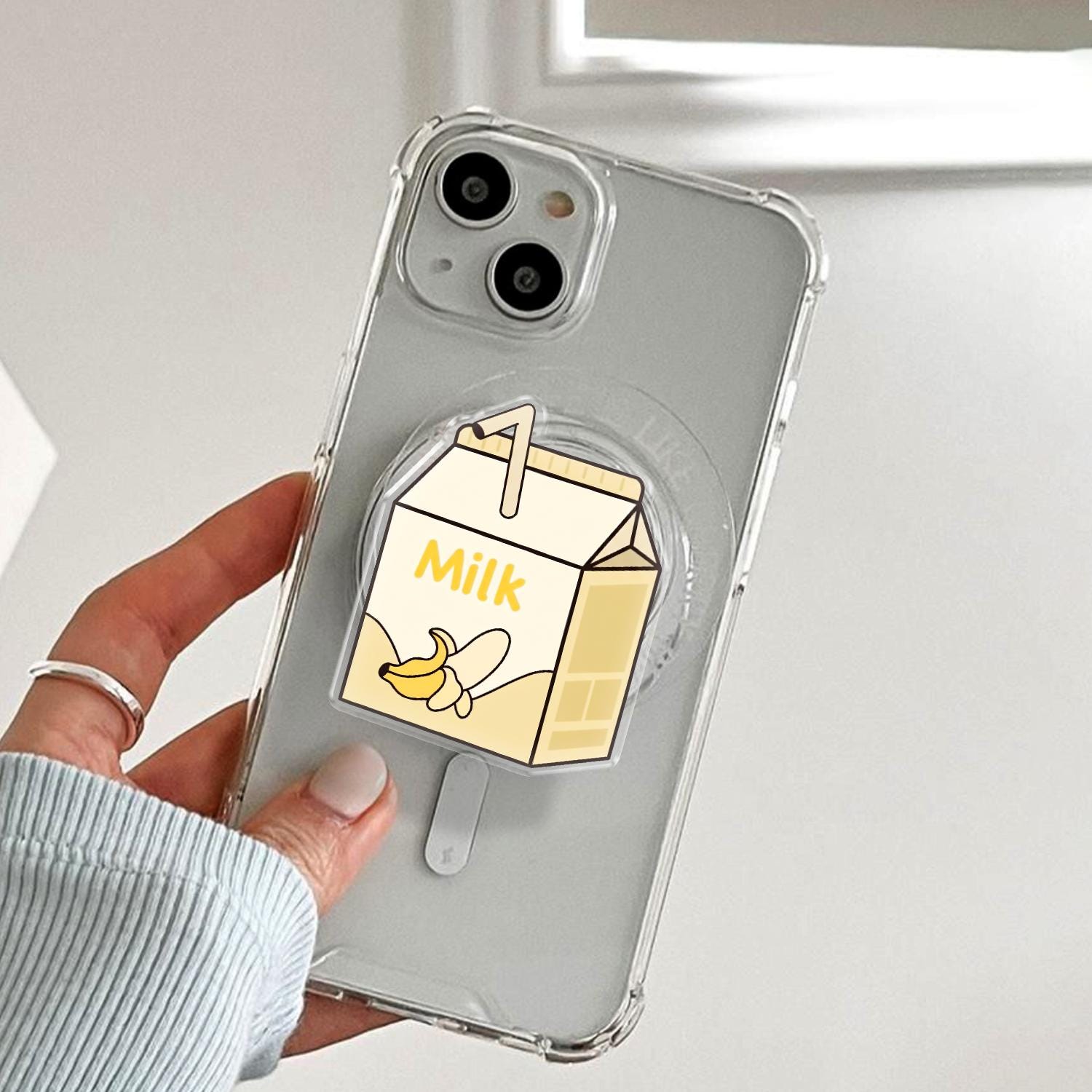 Aesthetic Banana Milk Carton Phone Grip, Cute Kawaii Illustration, Universal Magnetic & Adhesive Phone Stand
