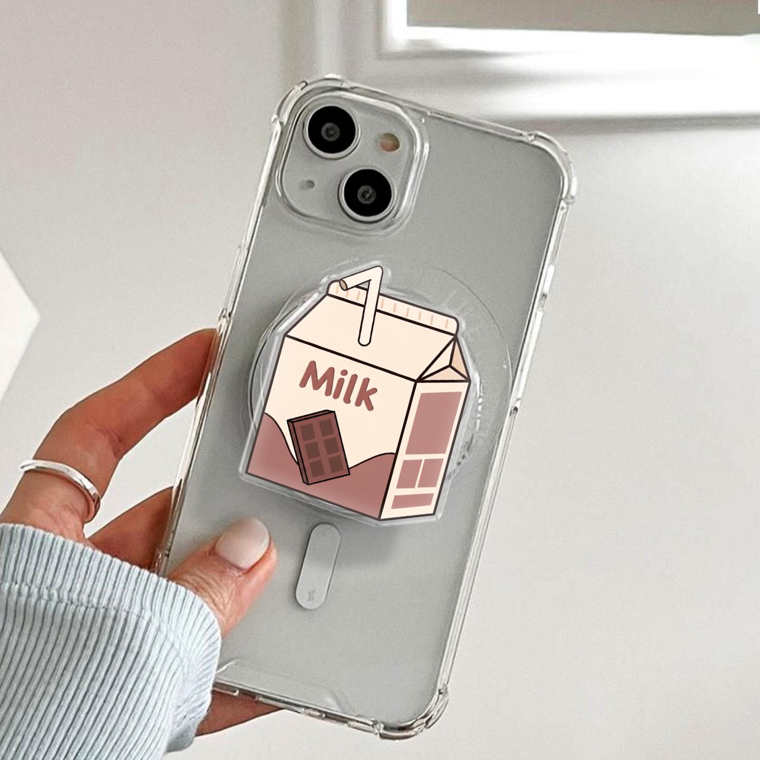 Aesthetic Chocolate Milk Carton Phone Grip, Cute Kawaii Illustration, Universal Magnetic & Adhesive Phone Stand