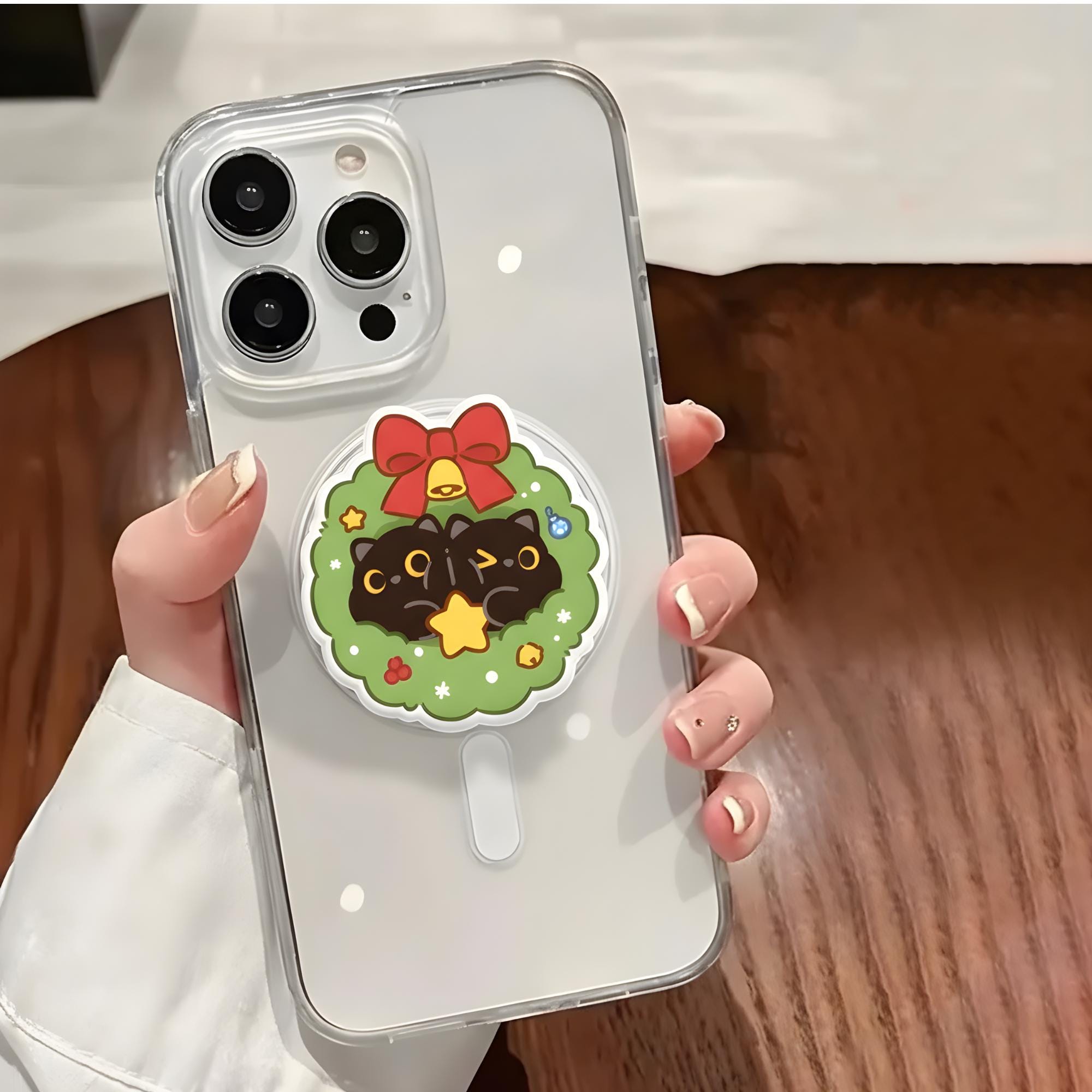 🎄🐱 Christmas Wreath Cat MagSafe Phone Grip – Kawaii Holiday Magnetic Gift 🎄🐱