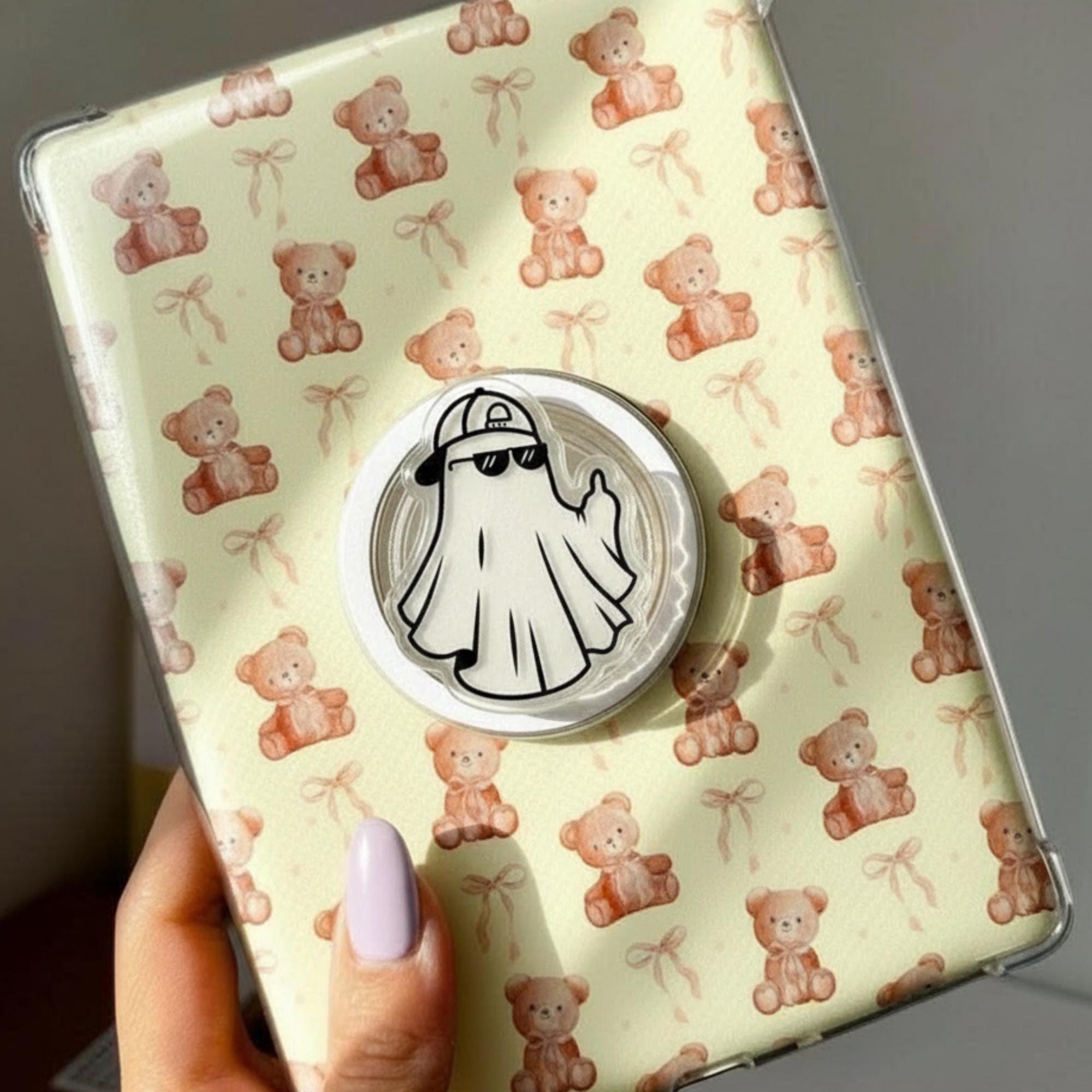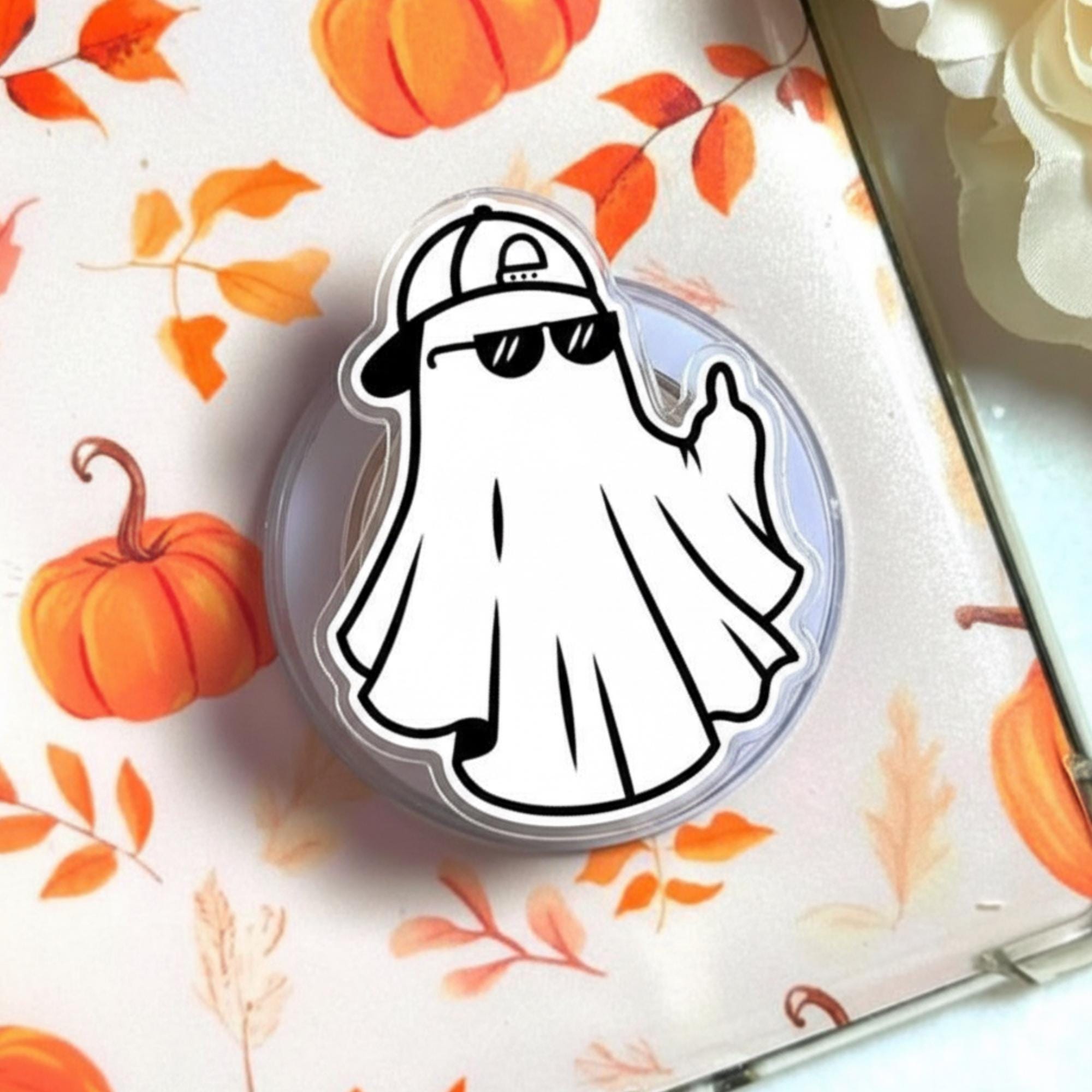 ✨ Add some spooky charm to your phone with this cool ghost phone grip. Featuring a ghost wearing a baseball cap and sunglasses, this kawaii PopSocket adds a fun, stylish twist to your device. It’s not just a cute accessory, but also a practical one, providing a secure grip for texting, selfies, or holding your phone comfortably. This is the perfect gift for anyone who loves quirky, playful designs with a spooky vibe.
