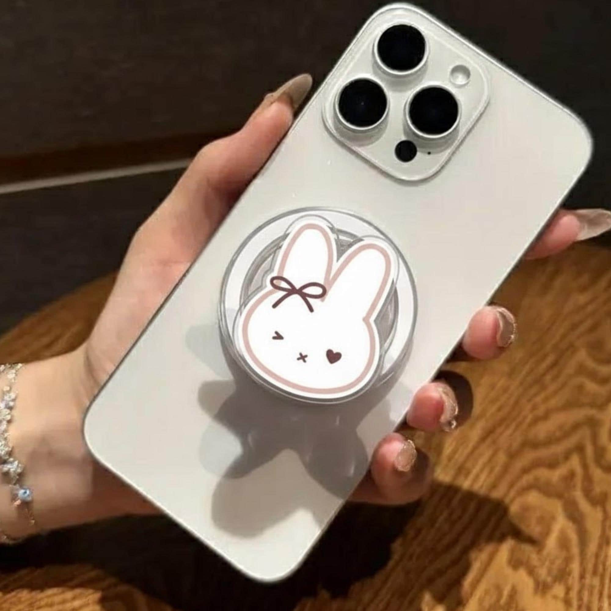 🐰 Add a burst of cuteness to your phone with this Kawaii Bunny MagSafe Phone Grip. Featuring an adorable bunny rabbit design with a sweet bow, this phone holder brings fun and personality to your phone. Inspired by Instagram’s photo-sharing style, it combines both functionality and style, making it a perfect accessory for animal lovers, especially fans of kawaii designs. Its strong magnetic grip works with MagSafe-compatible devices, ensuring a secure hold and easy attachment.