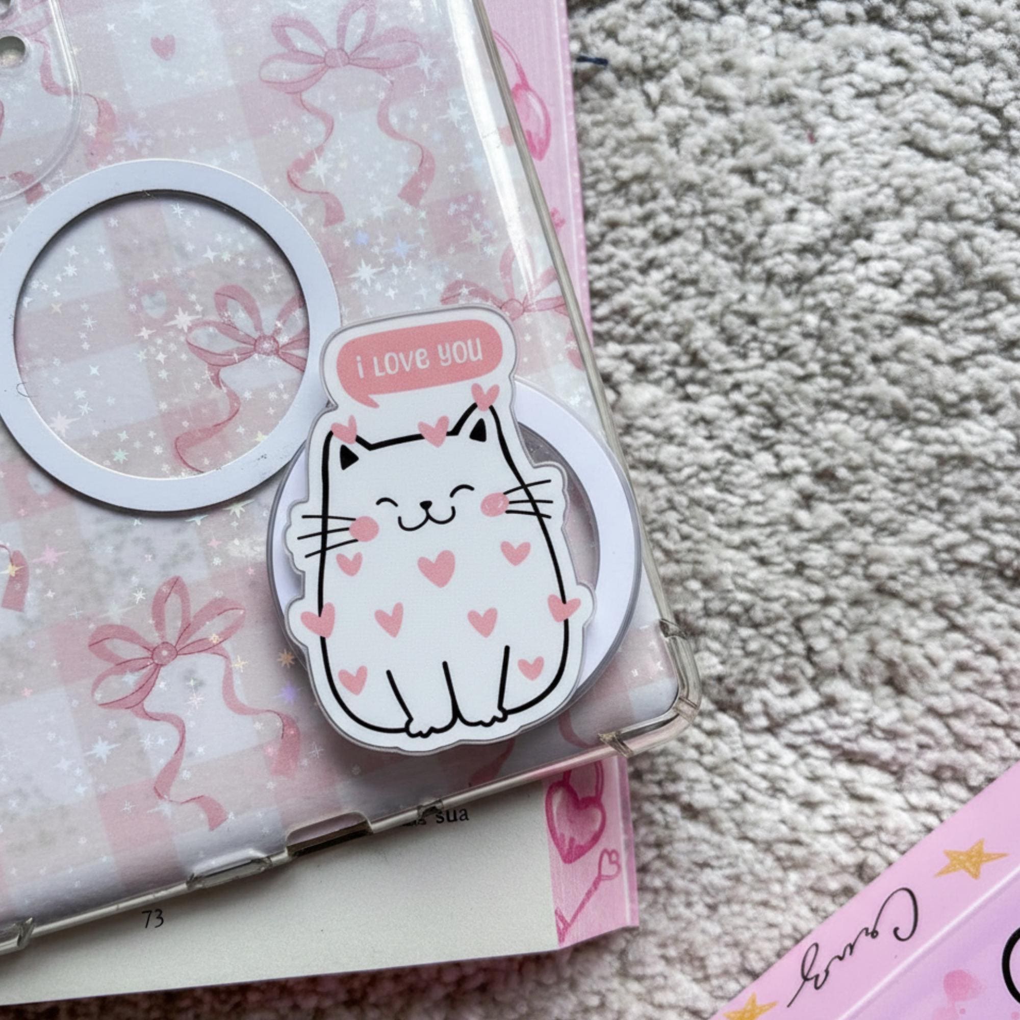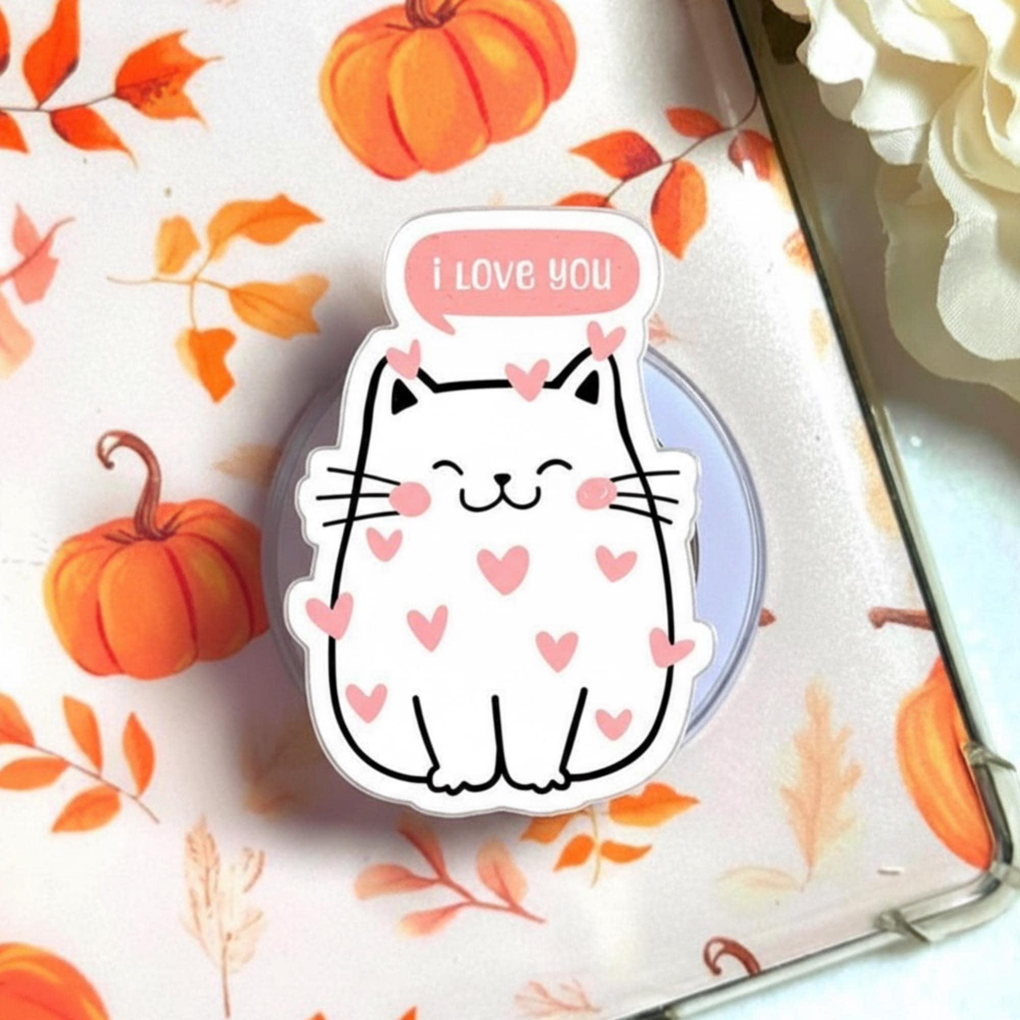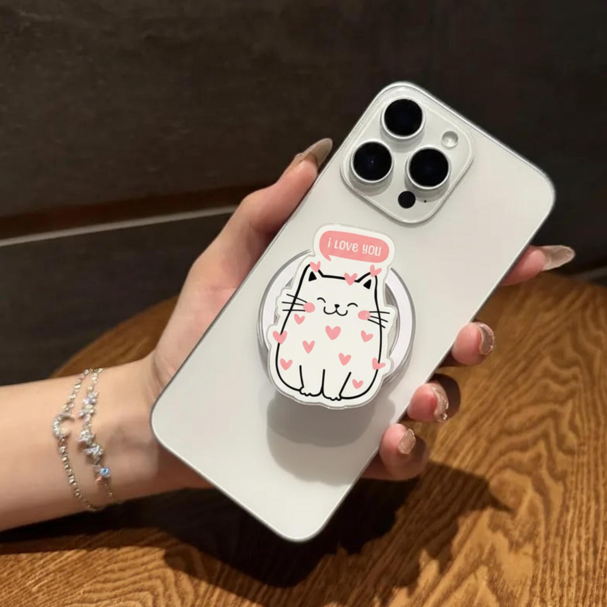 💖 I Love You Cat Phone Grip – Show your love with this adorable cat phone grip! Featuring a cute white cat surrounded by pink hearts and a "I Love You" speech bubble, this design radiates positivity and love. Perfect for cat lovers, those who love cute accessories, or anyone who needs a little reminder of love.
