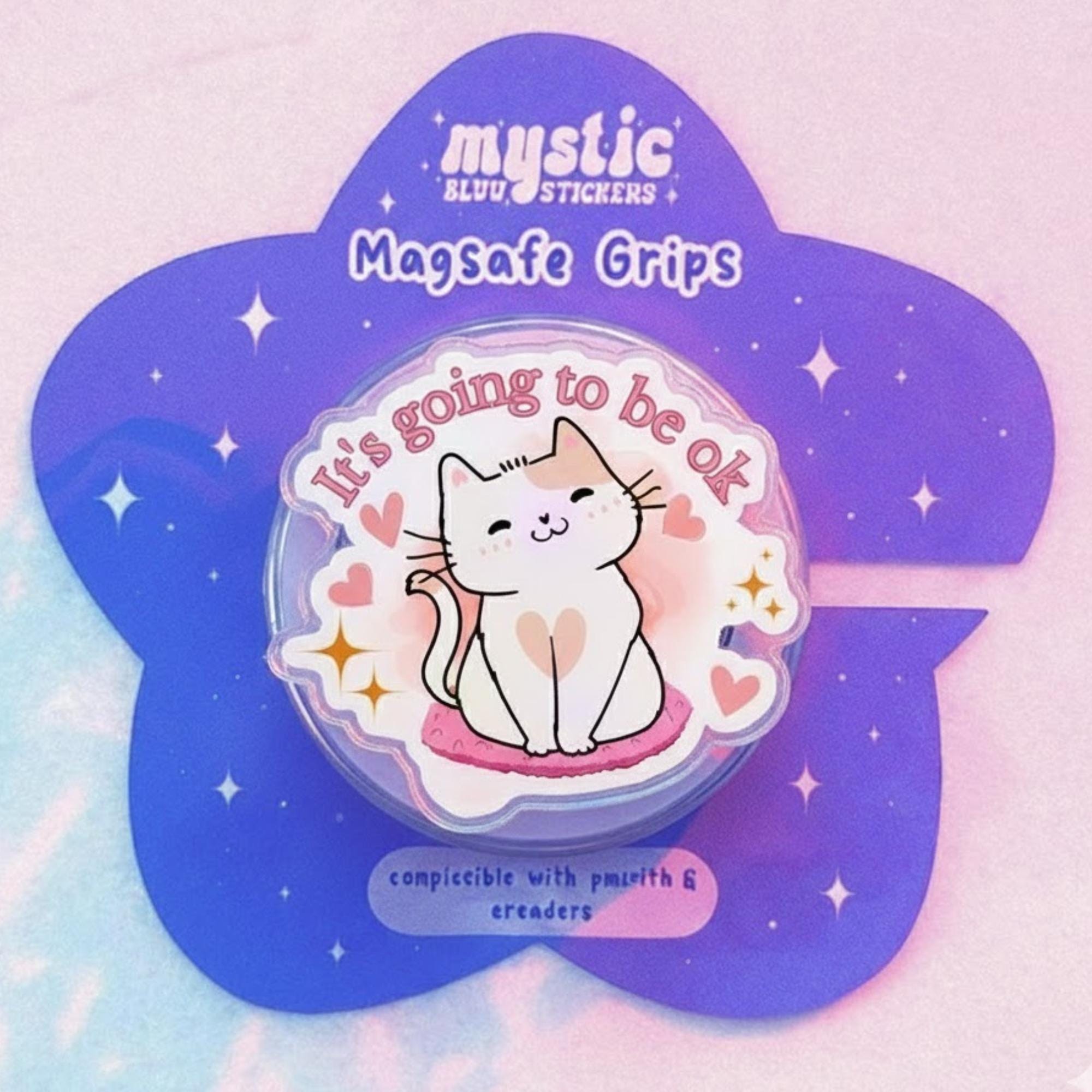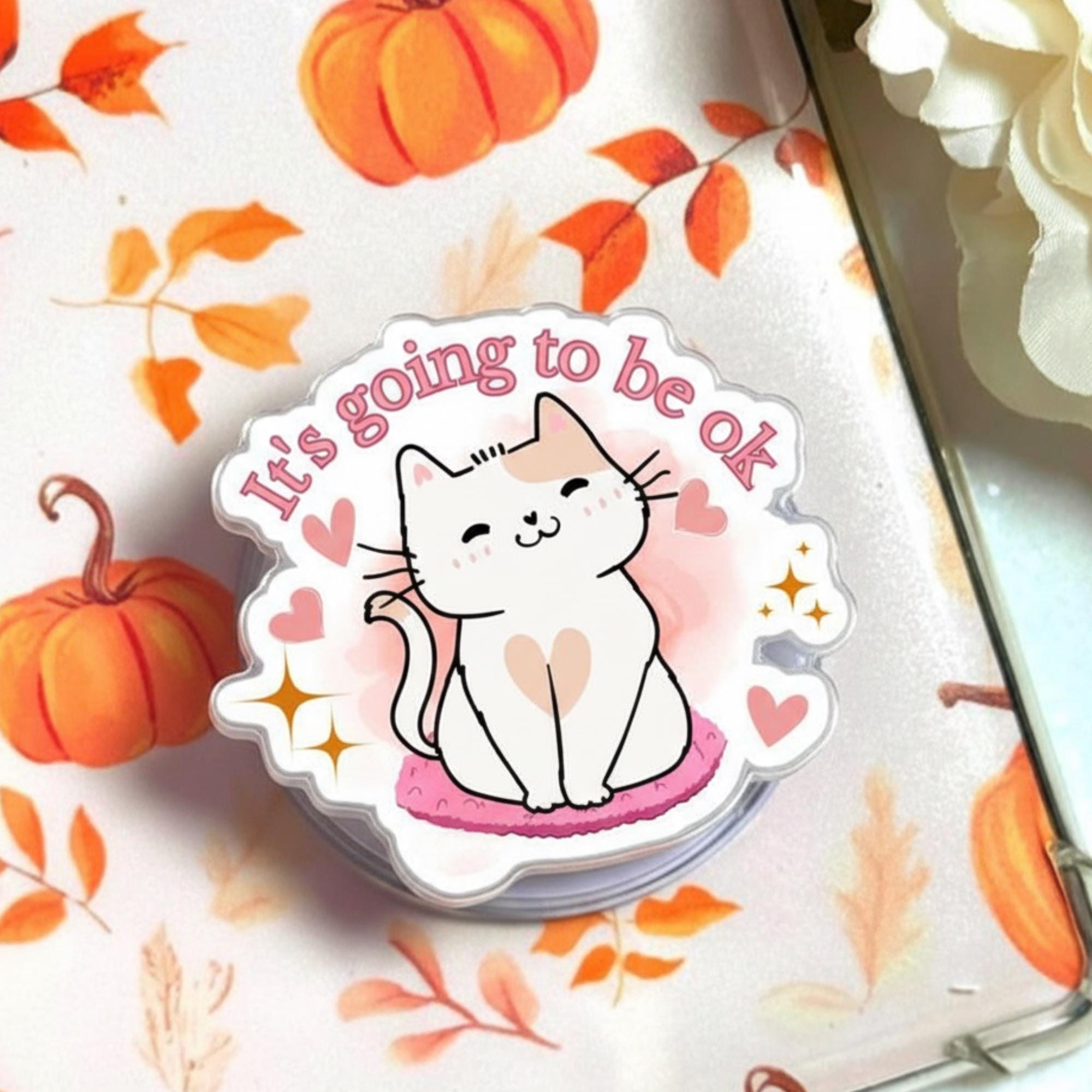 💖 Cute Cat Phone Grip – This adorable cat phone grip features a sweet cat and the motivational quote "It's going to be ok." A perfect phone accessory to bring positivity and cuteness to your phone, this grip will brighten your day with its sweet design!