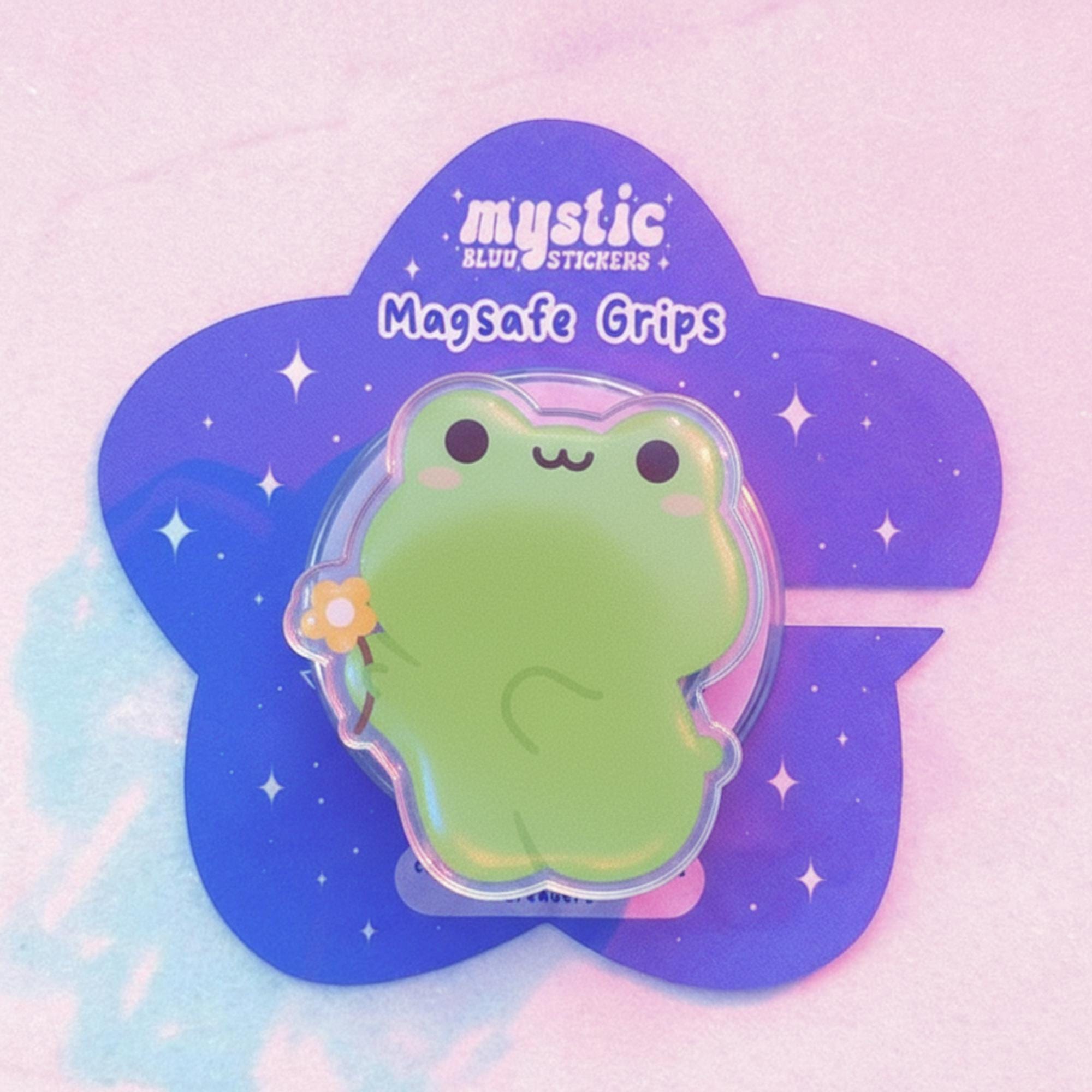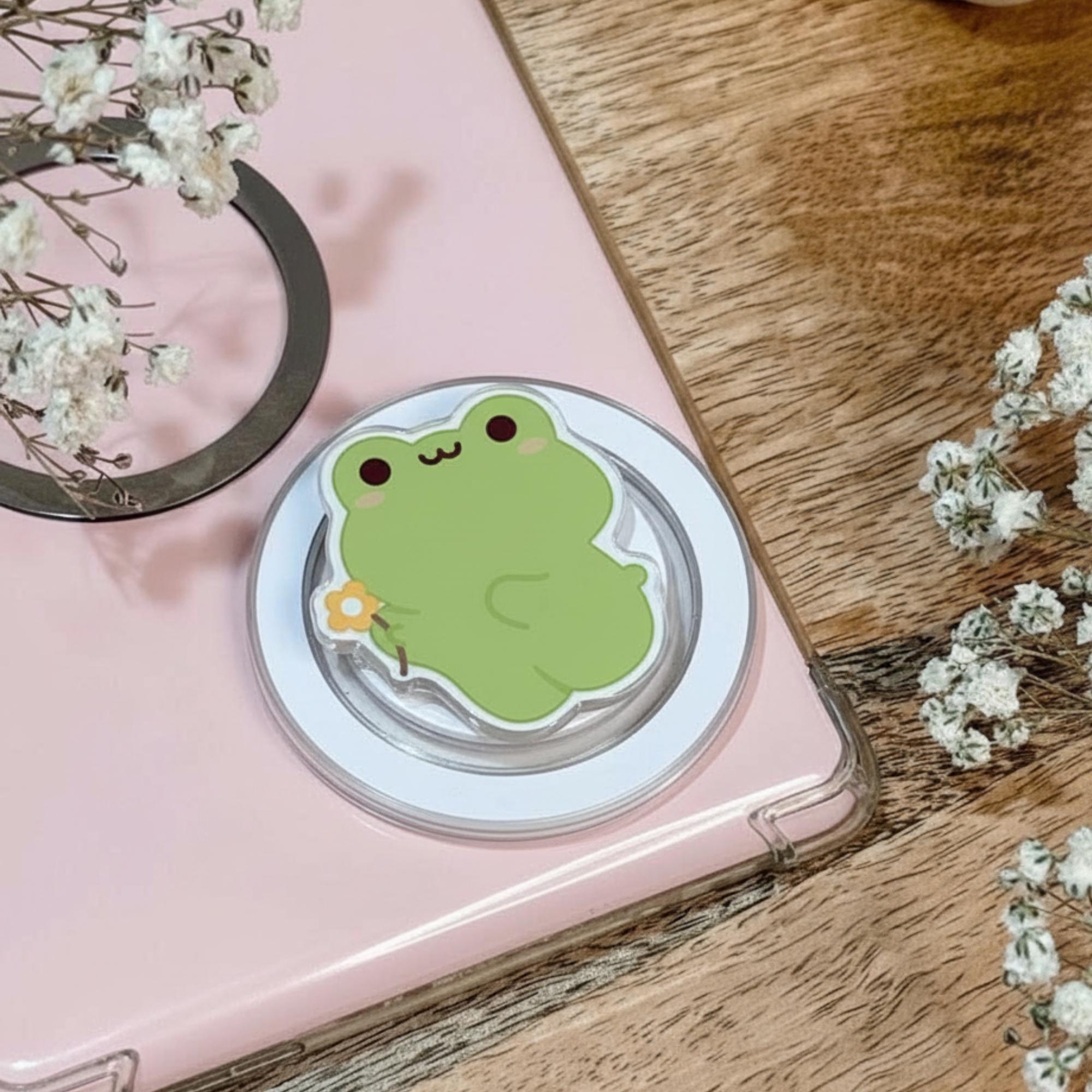 🎁 Add a playful and charming touch to your phone with this cute frog phone grip. Featuring an adorable green frog holding a little flower, this kawaii phone grip is perfect for anyone who loves frogs or fun, cute designs. Not only is it a stylish accessory, but it also provides a secure grip, making it easier to text, take selfies, or just hold your phone comfortably throughout the day.