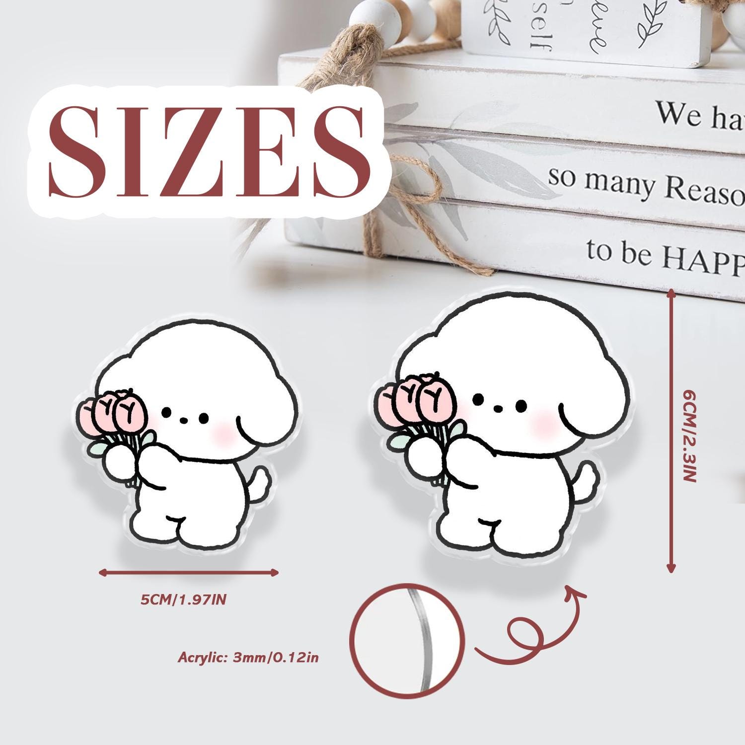 Adorable Character Artistry: This phone holder features a chubby, soft white puppy blushing while holding a sweet bouquet of pink tulips, perfect for adding a touch of joy to your day.