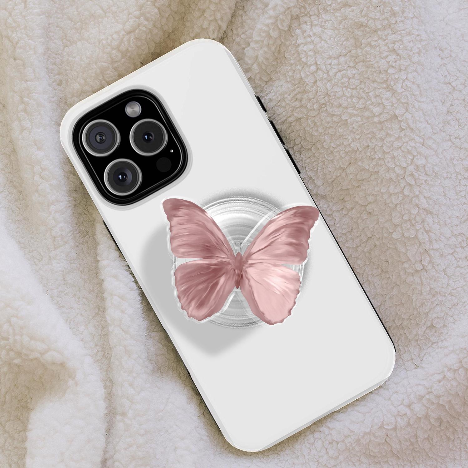 Aesthetic Dusty Pink Butterfly Phone Grip, Realistic Wing Illustration, Universal Magnetic & Adhesive Phone Stand