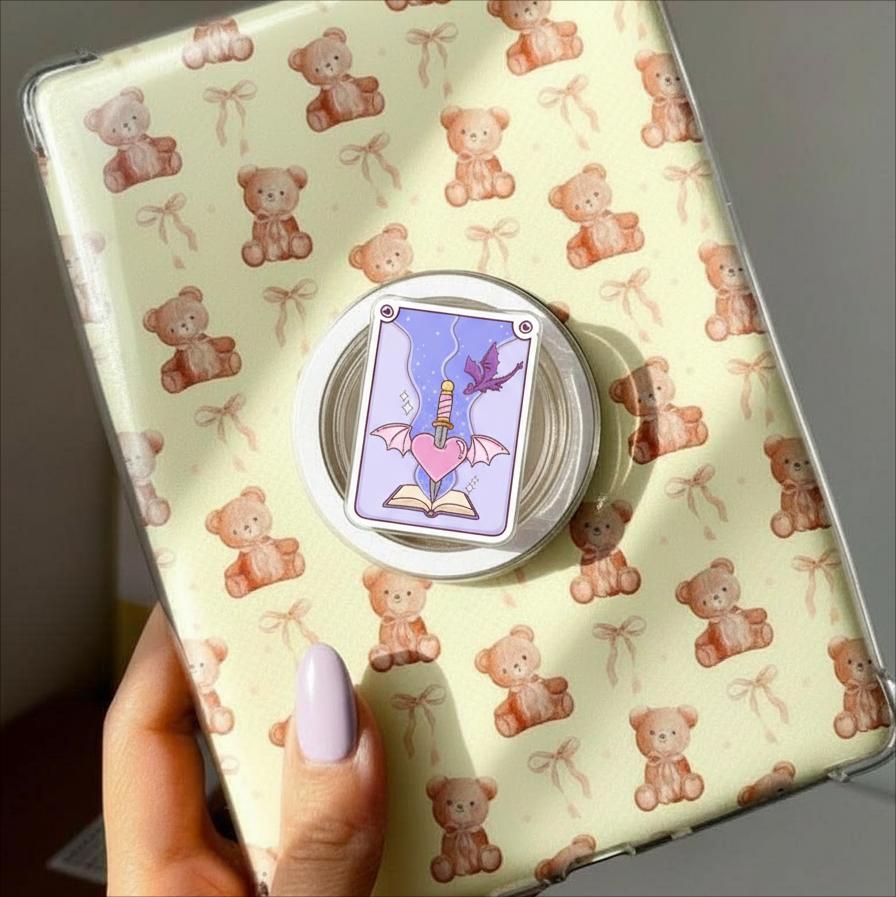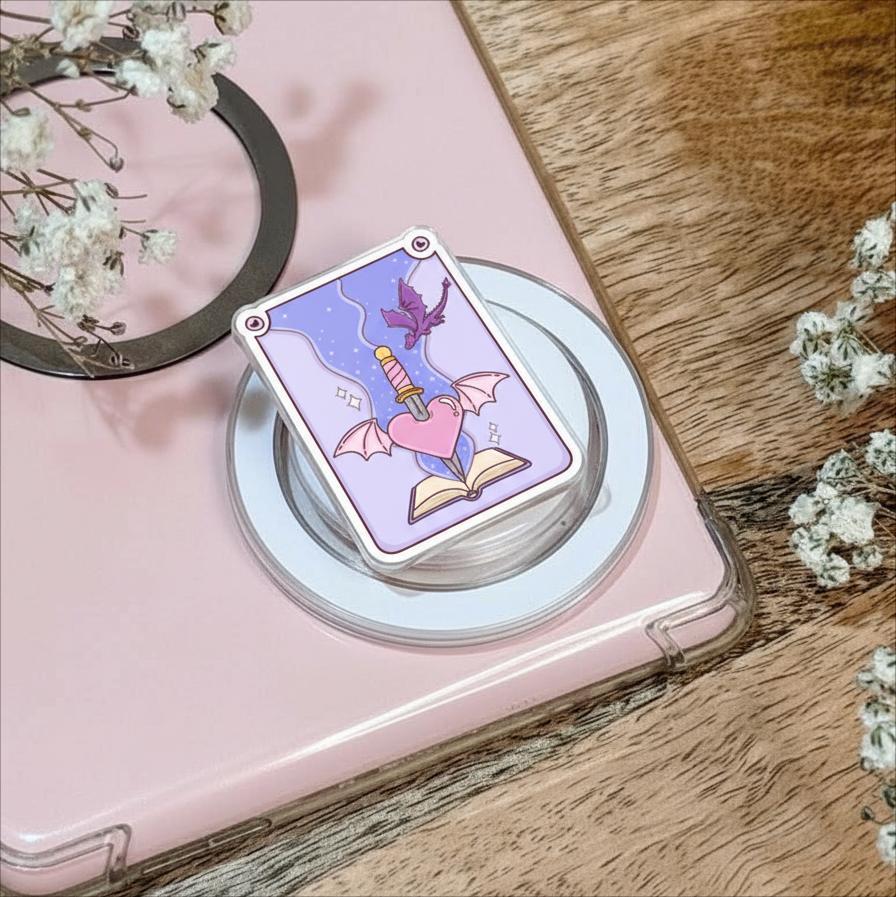 Step into a magical realm with this Fantasy Heart MagSafe Phone Grip, featuring a dreamy pink heart with bat-like wings, pierced by a sword and guarded by a tiny purple dragon. Set above an open book and surrounded by stars, this whimsical design is perfect for fantasy lovers, cozy readers, and anyone who adores mystical aesthetics. Whether you're curled up with your Kindle or journaling your next adventure, this magnetic grip adds charm, comfort, and storytelling flair to your tech.