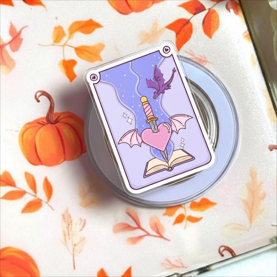 🐉 Fantasy Heart MagSafe Phone Grip – Pink Winged Heart Popgrip with Sword & Dragon for Bookish Readers