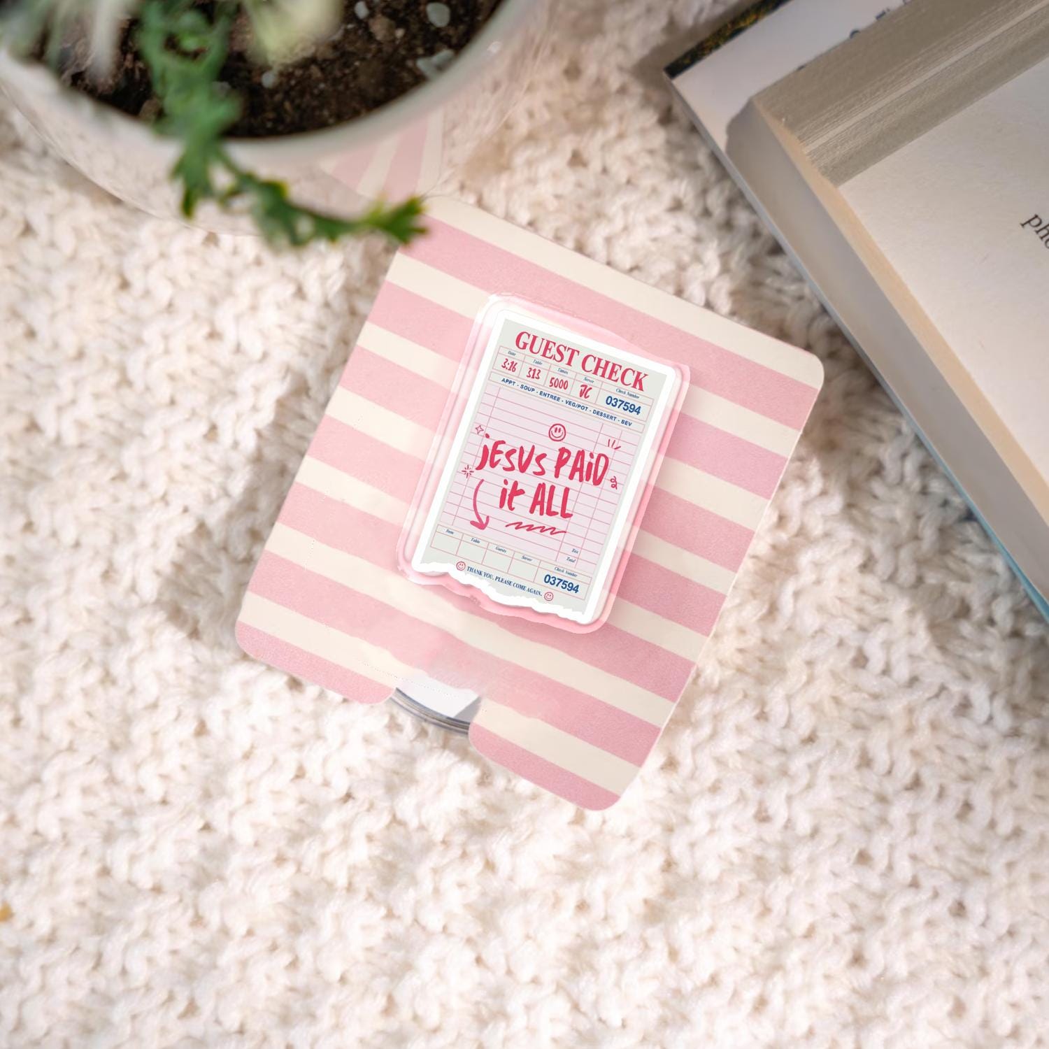 Unique Christian Design: Showcases a playful guest check with a powerful message, combining style and faith.