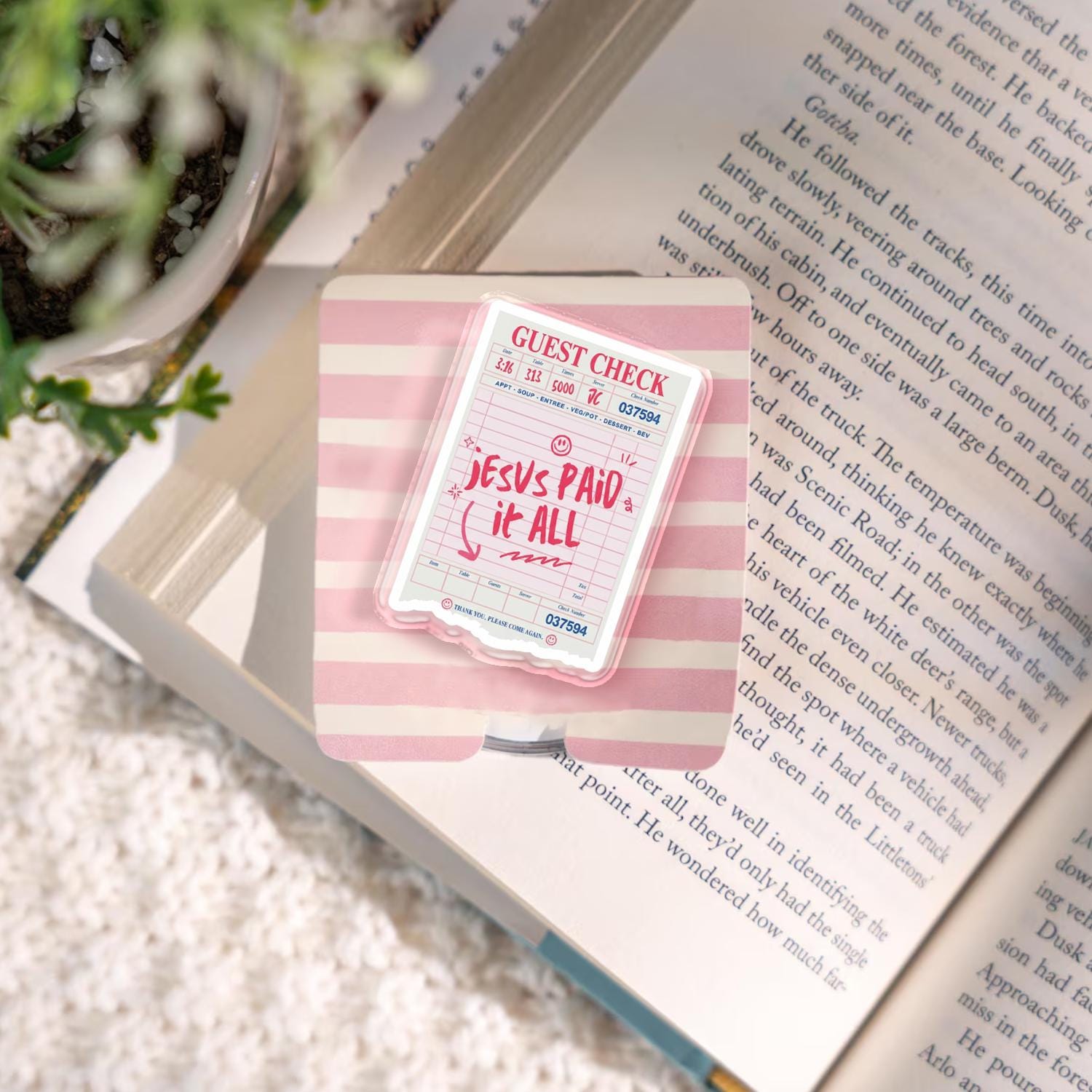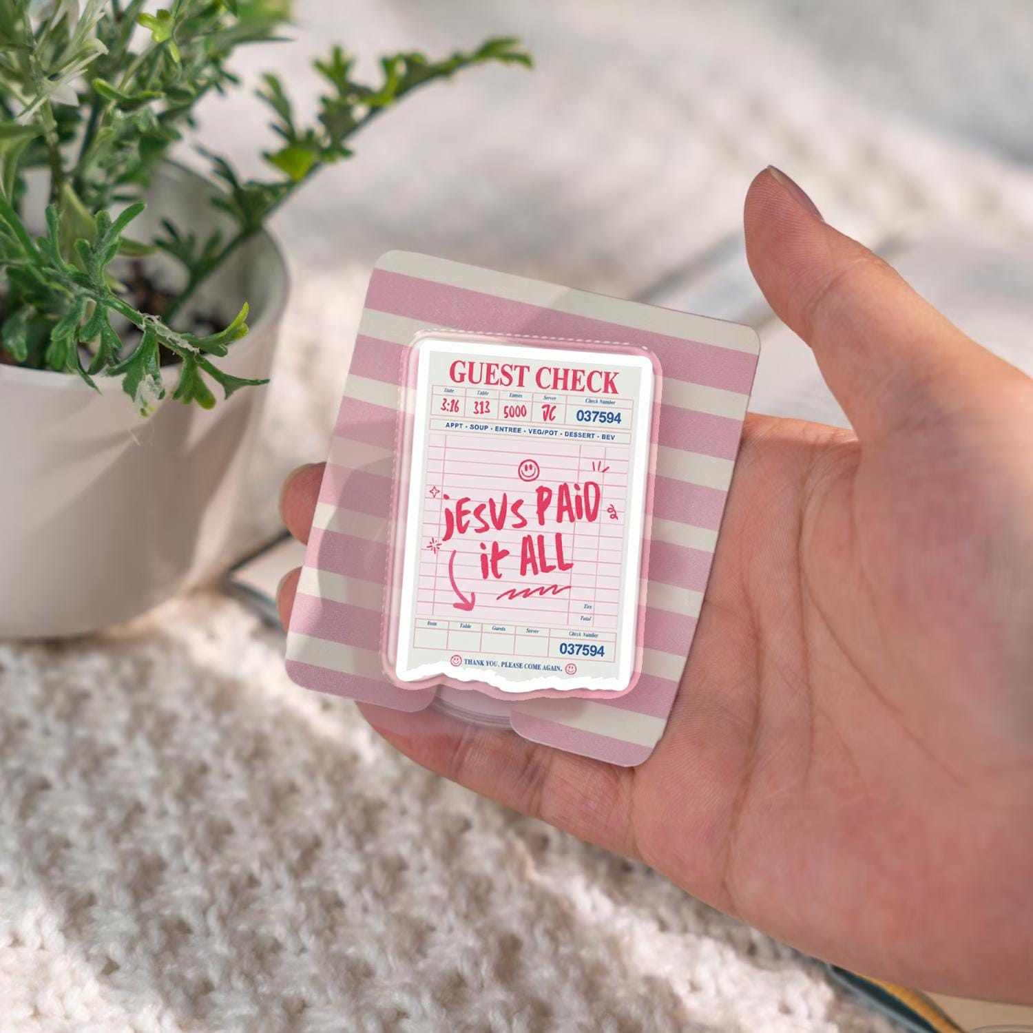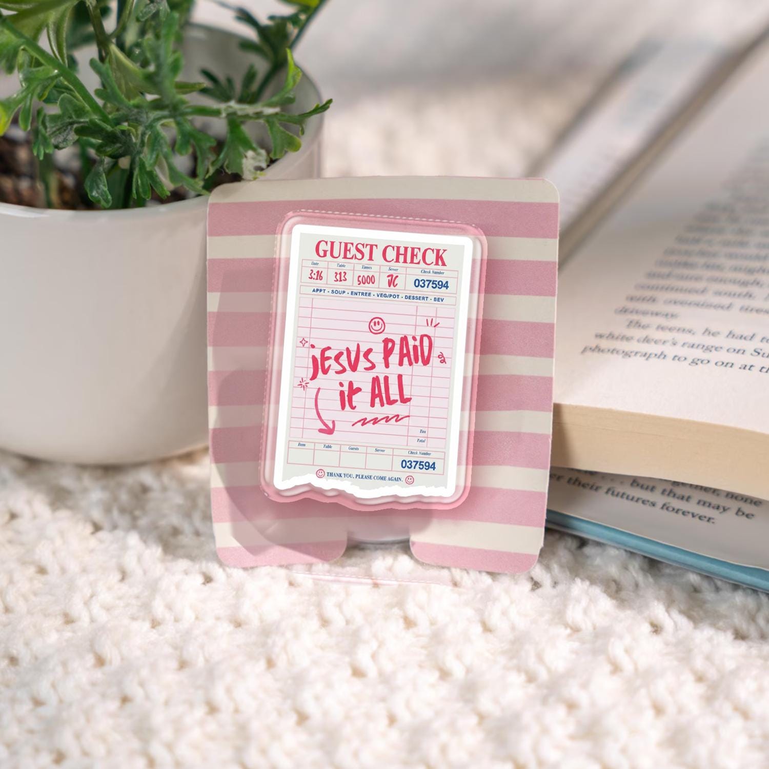 Guest Check Jesus Paid It All Phone Case – Kawaii Christian Phone Accessory, Cute Jesus Quote Phone Stand, Unique Gift for Faith-Based Fans