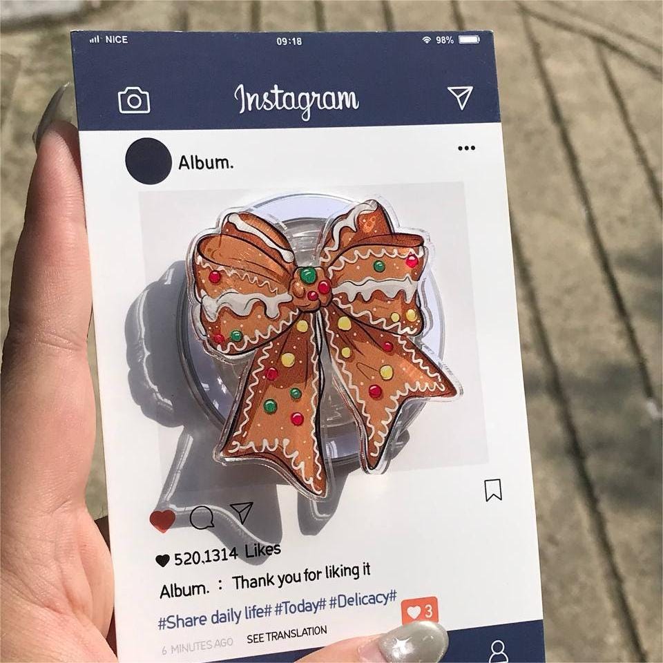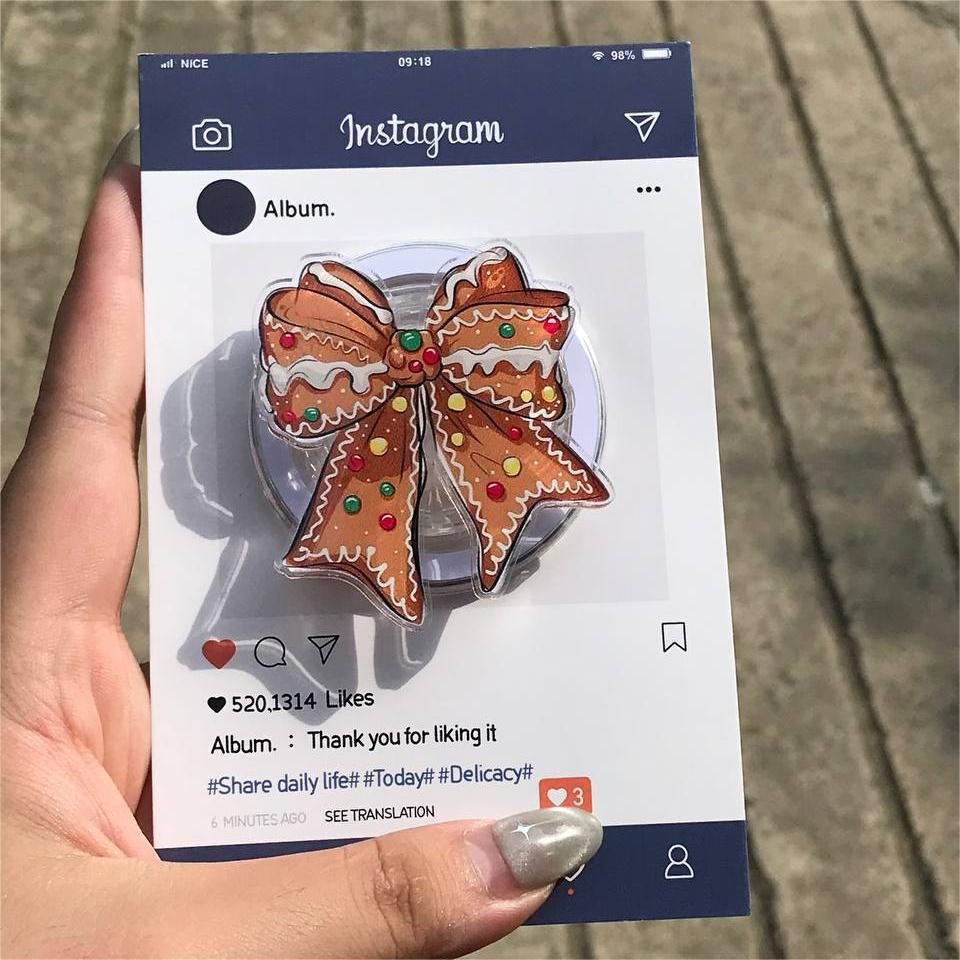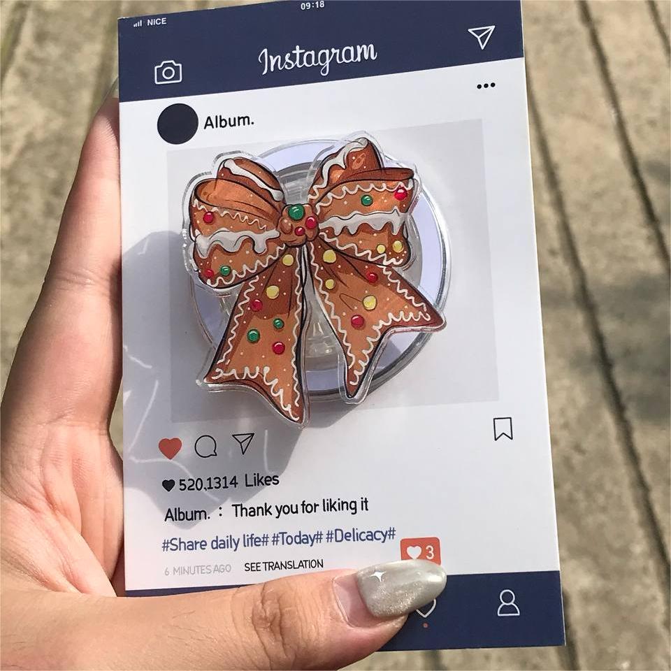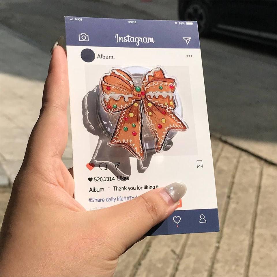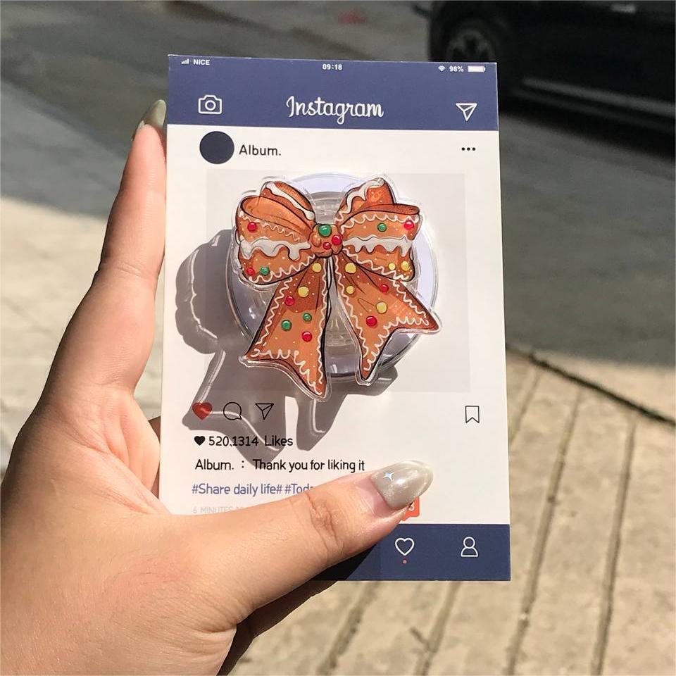 🎄 Add some holiday charm to your phone with this Gingerbread Bow Phone Grip! Featuring a festive gingerbread bow decorated with colorful candy accents, this phone grip is the perfect way to embrace the season while keeping your phone secure and stylish!