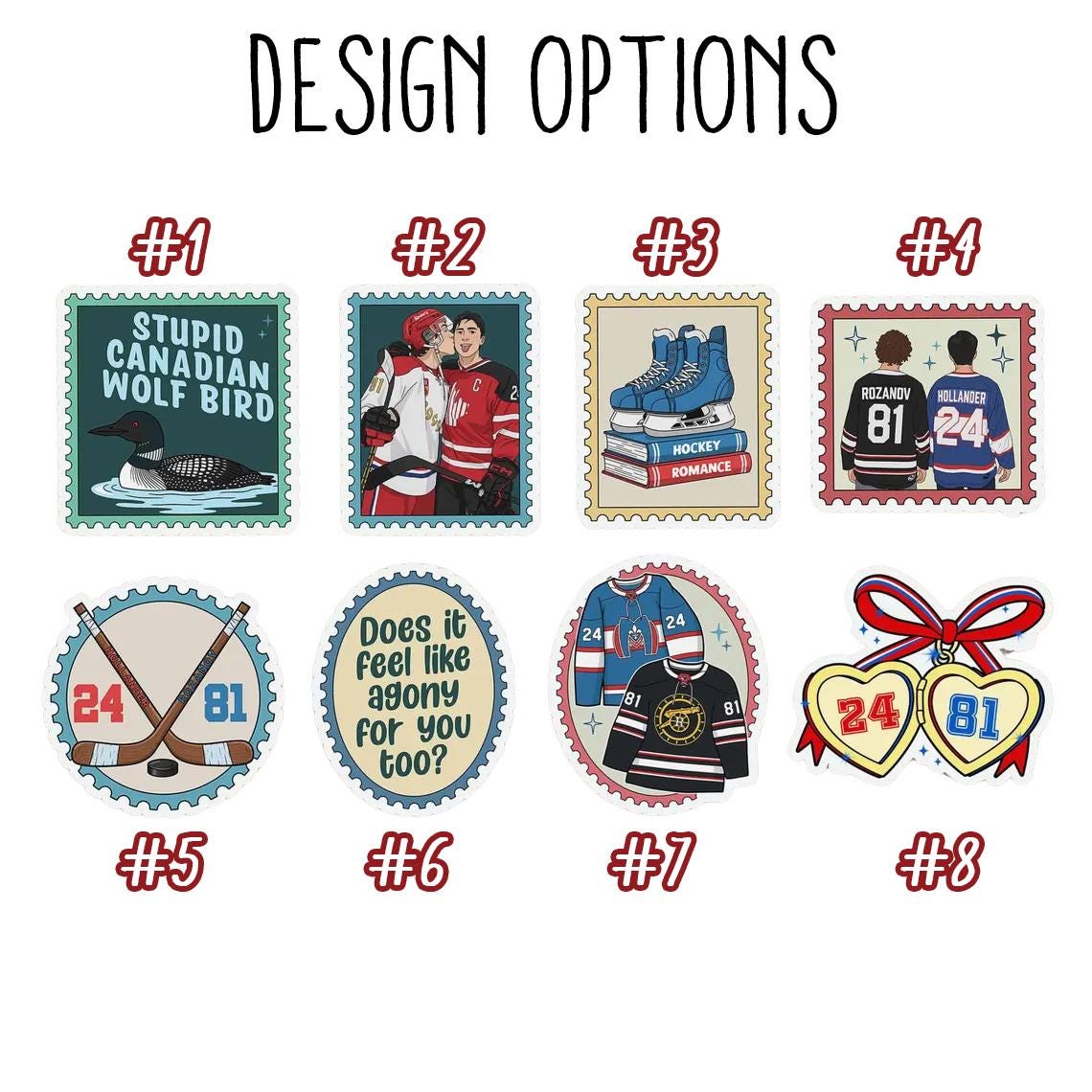 Unique design celebrating a heated rivalry-turned-romance for couples and hockey fans.