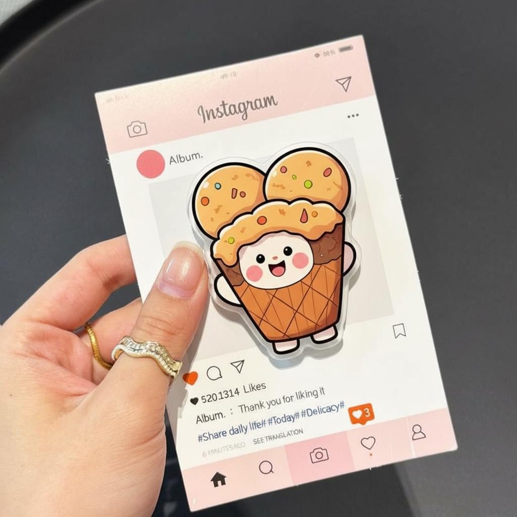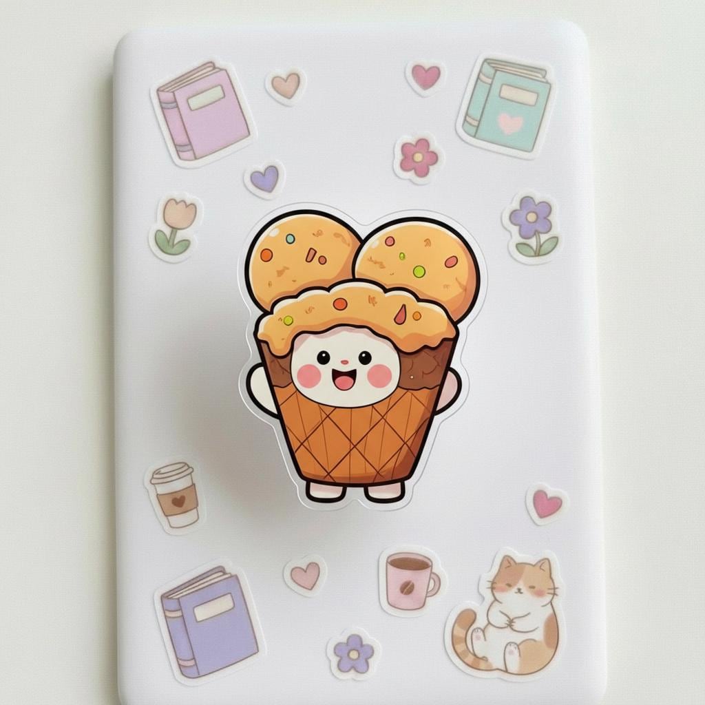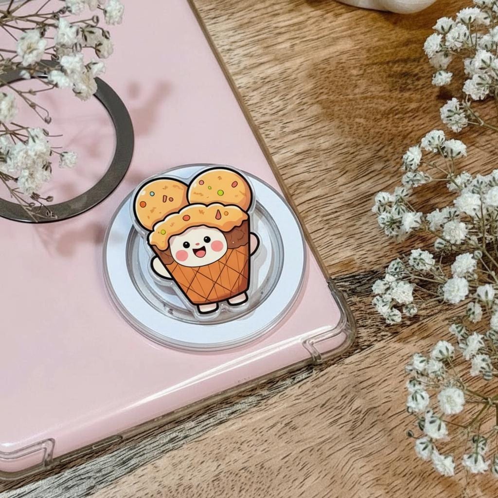 Bring a sweet touch to your phone with this Ice Cream Cone MagSafe grip, featuring a cheerful triple scoop design with colorful sprinkles and a smiling face. This kawaii cartoon magnetic popgrip blends dessert-inspired charm with everyday functionality, making it perfect for food lovers, anime fans, and anyone who enjoys quirky accessories that stand out.