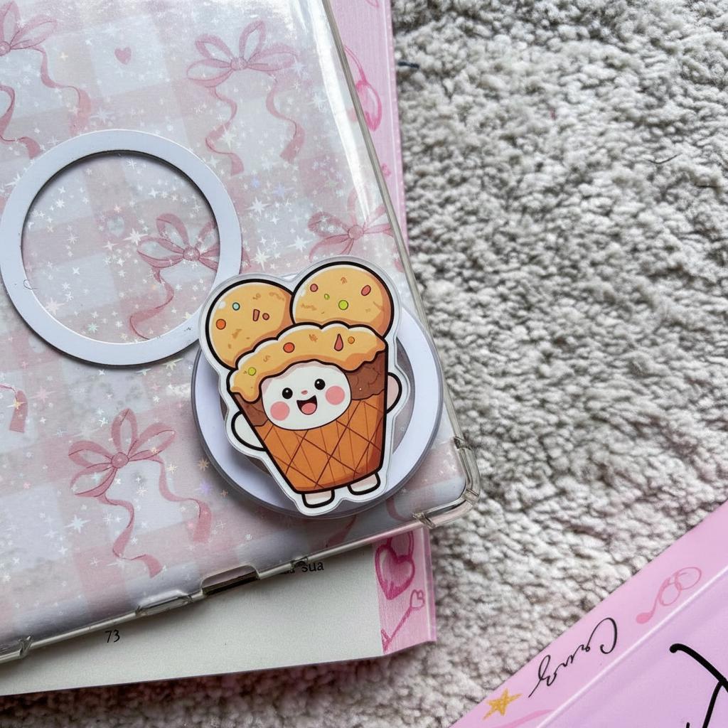 🍦✨ Ice Cream Cone MagSafe Phone Grip – Kawaii Cartoon Triple Scoop Magnetic Popgrip, Funny Dessert Character Phone Stands
