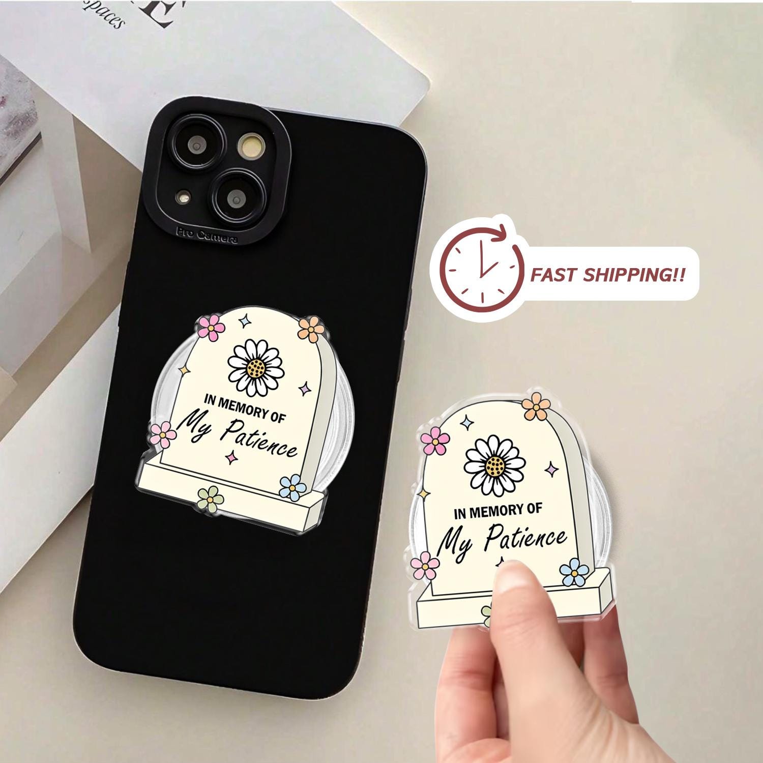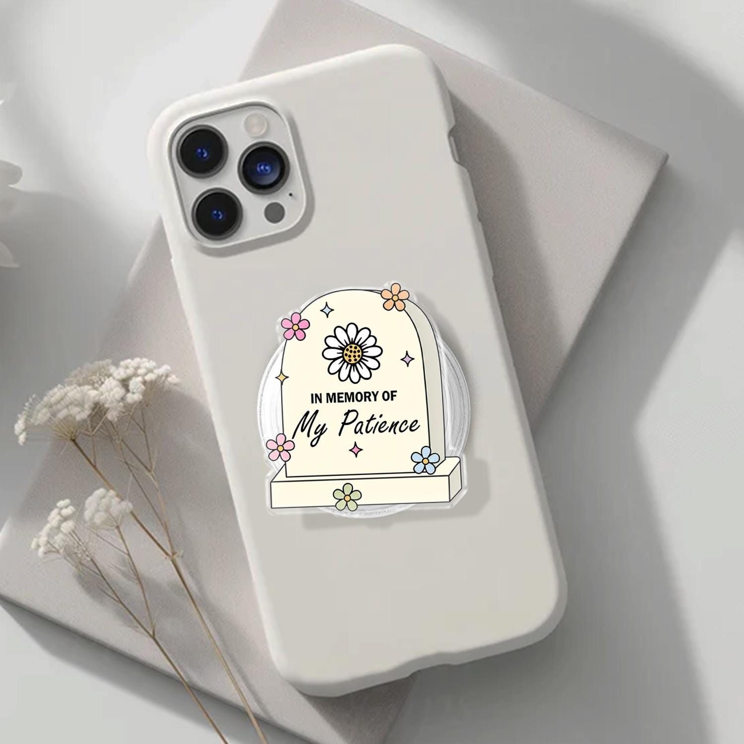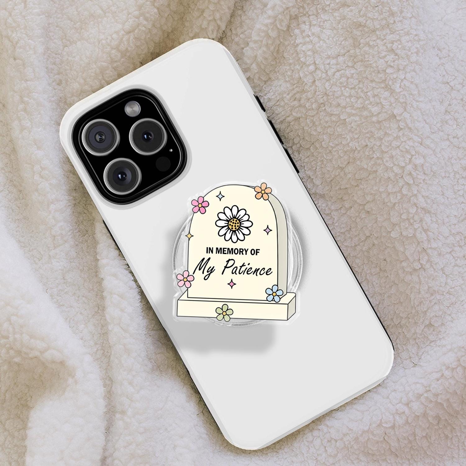 Aesthetic "In Memory of My Patience" Tombstone Phone Holder, Funny Sarcastic Illustration, Universal Magnetic & Adhesive Phone Stand