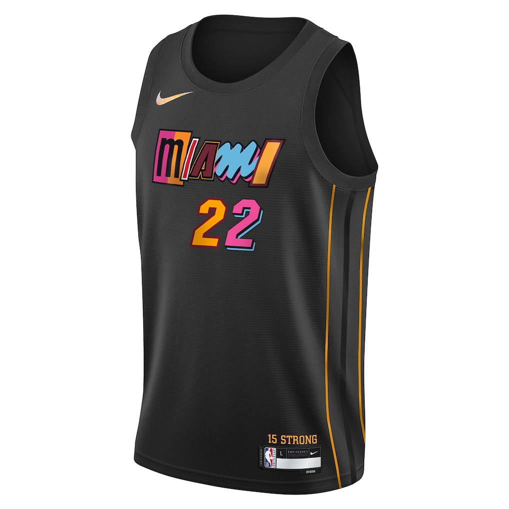 🏖️🔥 Commemorate a historic playoff run with this Jimmy Butler 2023 Finals City Edition jersey. The black design features high-quality stitched details that reflect the “Heat Culture” and their gritty performance on the big stage. This jersey offers a premium look and feel for any dedicated Miami basketball fan.