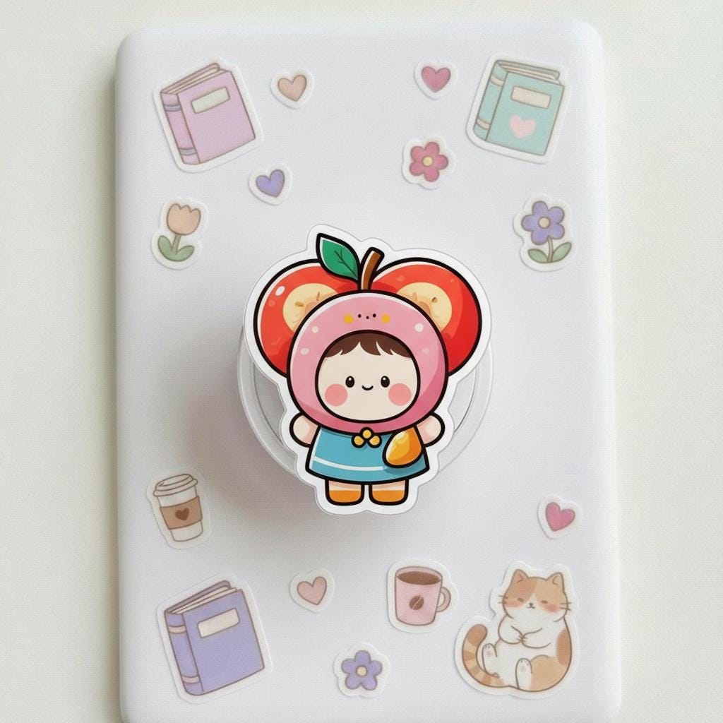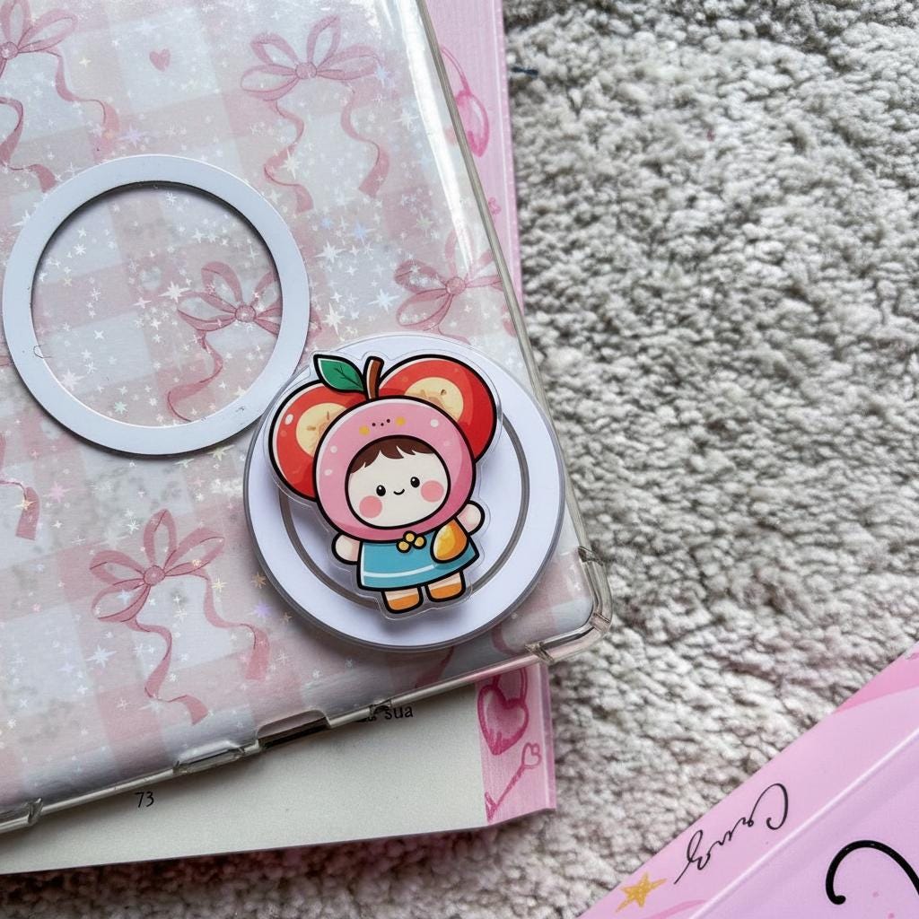 Add a sweet and seasonal touch to your phone with this Kawaii Apple Hood MagSafe grip, featuring a playful fruit-inspired character in a cozy autumn design. This autumn fruit character magnetic phone stand blends kawaii charm with functionality, making it perfect for fall lovers, anime fans, and anyone who enjoys quirky accessories that stand out.