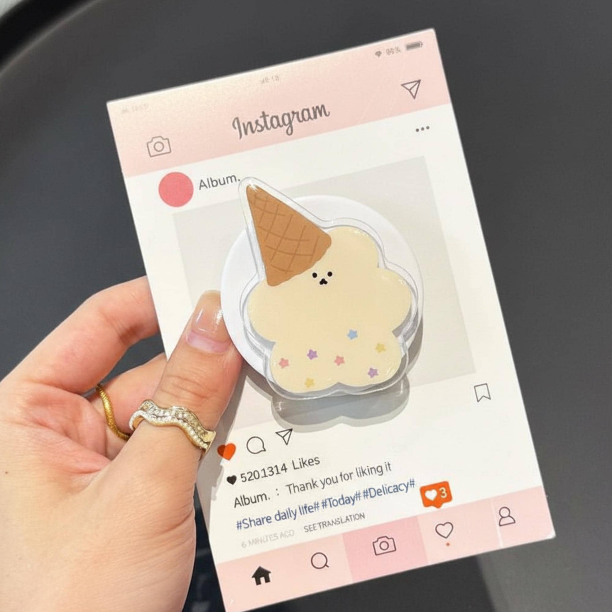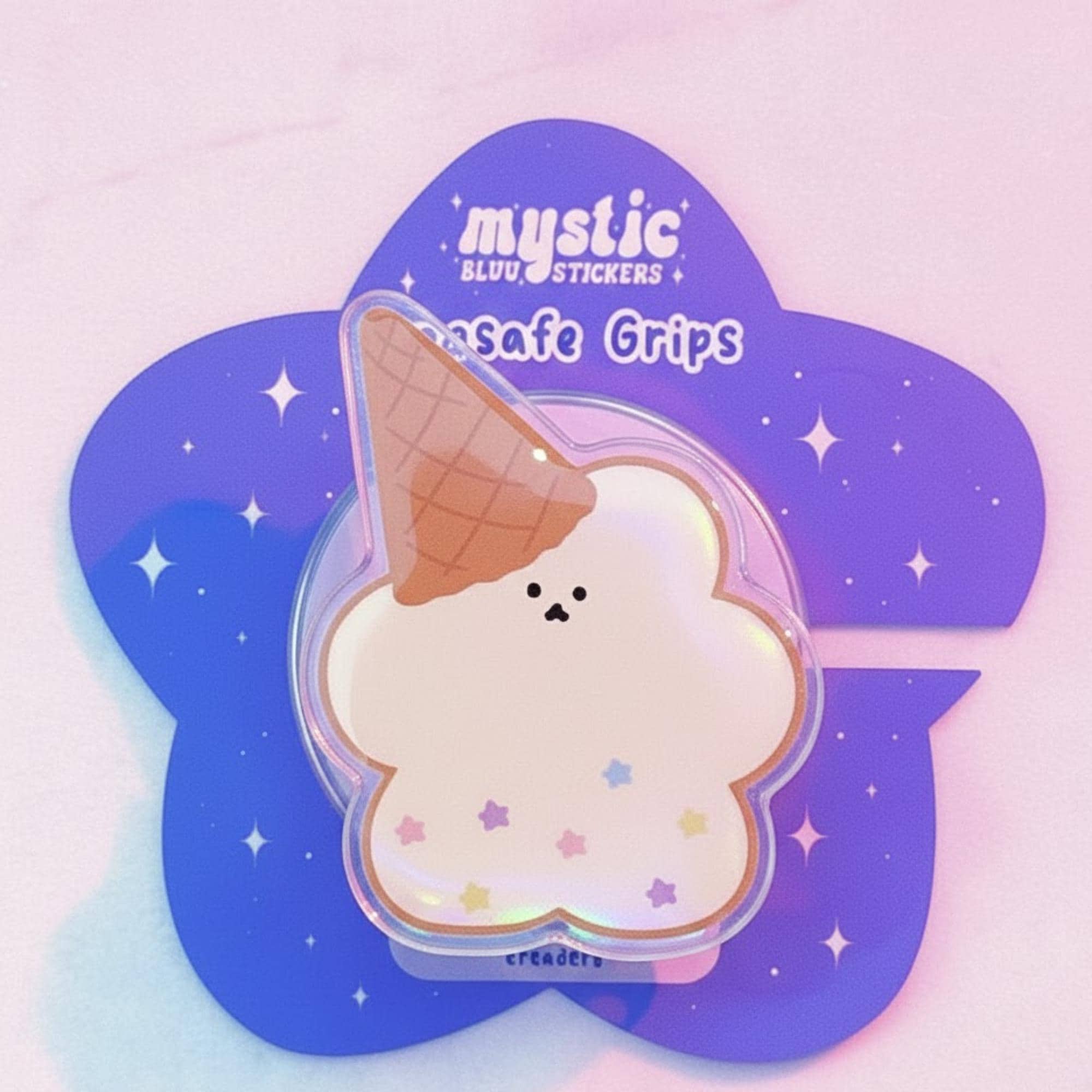 🐻 Add a sweet and fun touch to your phone with this Kawaii Ice Cream Cloud MagSafe Phone Grip. Featuring a cute cloud design topped with a delightful ice cream cone and pastel star details, this phone grip is perfect for anyone with a sweet tooth or a love for kawaii aesthetics. The magnetic grip works with MagSafe-compatible devices for easy attachment and a secure hold, while keeping your phone looking adorable and functional.