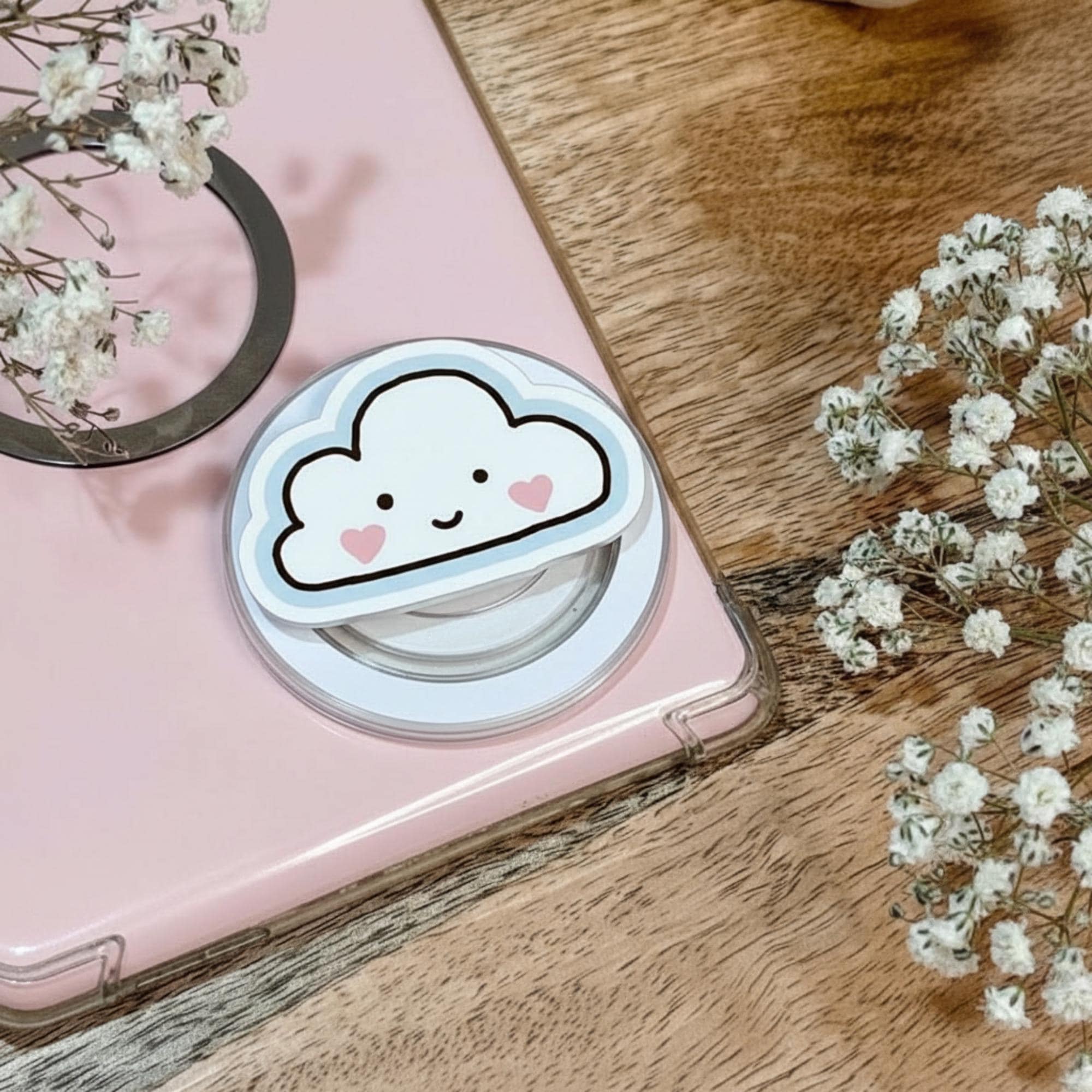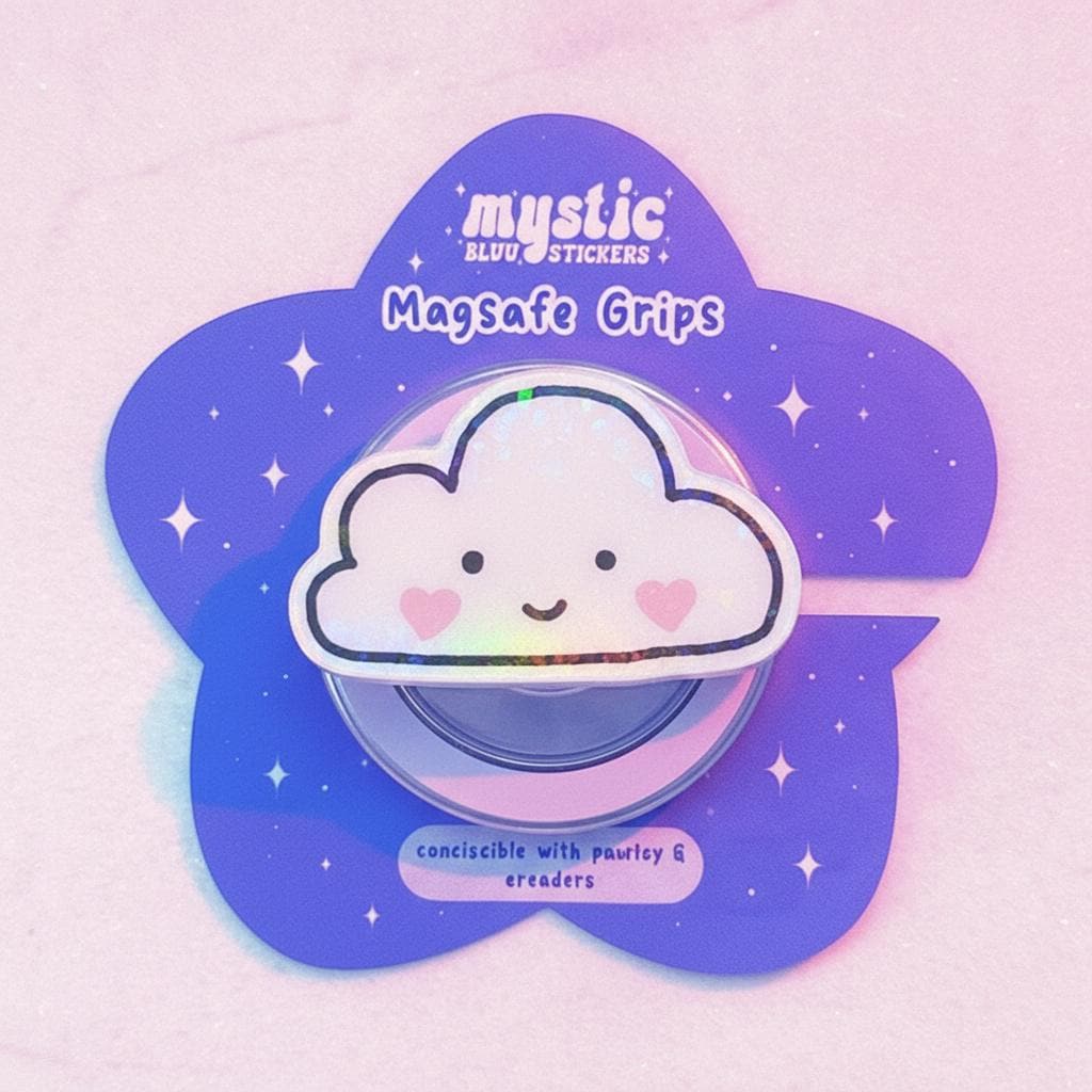 🌥 Bring a touch of cuteness to your phone with this Kawaii Cloud MagSafe Phone Grip. Featuring an adorable smiling cloud design with sweet heart details, this phone grip is perfect for anyone who loves soft, kawaii aesthetics. The strong magnetic grip is compatible with MagSafe devices, making it a functional and charming accessory for your phone. Whether you're gifting it or keeping it for yourself, this cloud phone holder adds a touch of happiness and fun to your daily routine.