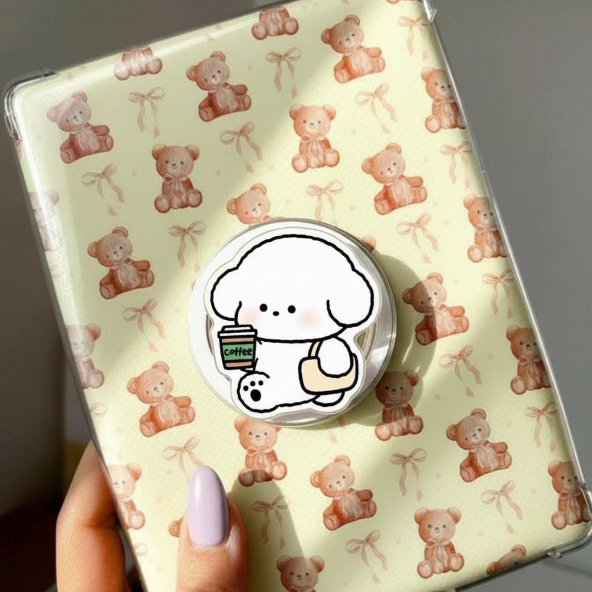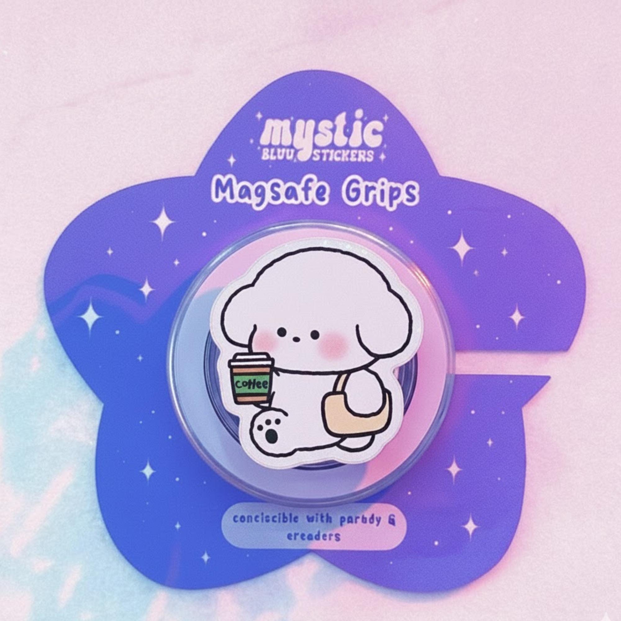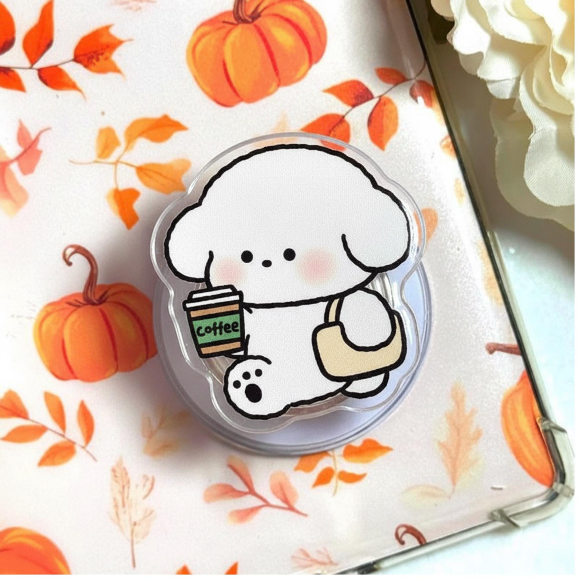 ☕ Kawaii Coffee Dog Phone Grip – Adorable Puppy with Coffee and Bag. Embrace the cuteness with this delightful Kawaii Coffee Dog Phone Grip! Featuring a fluffy puppy holding a cup of coffee and a stylish tote bag, this phone grip is perfect for those who love both cute animals and coffee culture. This pastel-colored accessory keeps your phone safe and adds a fun, cute element to your daily routine!