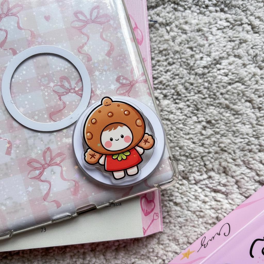 🍪🌸 Kawaii Cookie Hood MagSafe Phone Grip – Funny Pastry Character Phone Stand, Gift for Kawaii & Food Lovers