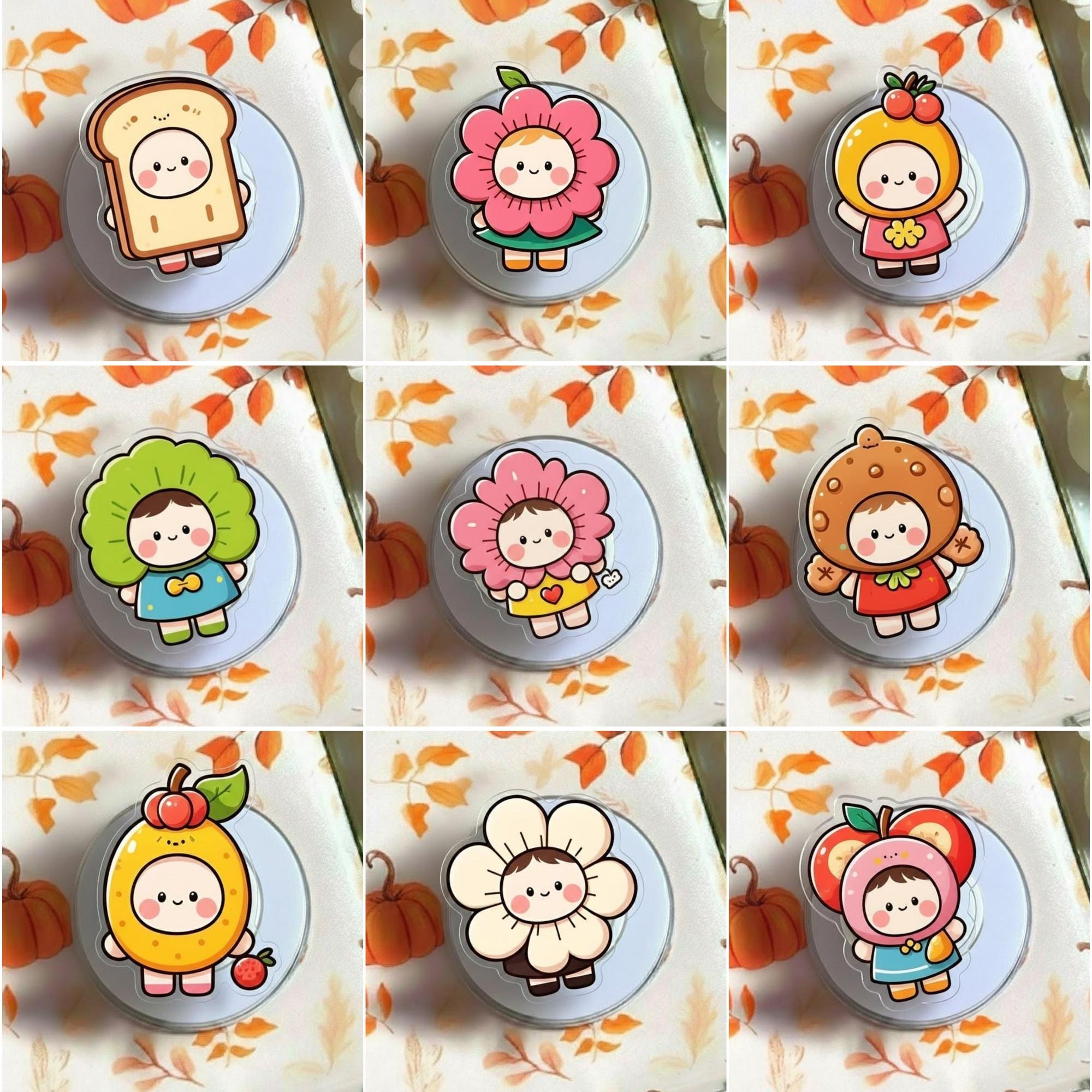 Kawaii Fruit Girl MagSafe Phone Grip Collection, Cute Food Magnetic Popgrip, Funny Cartoon Phone Stand, Gift for Foodies