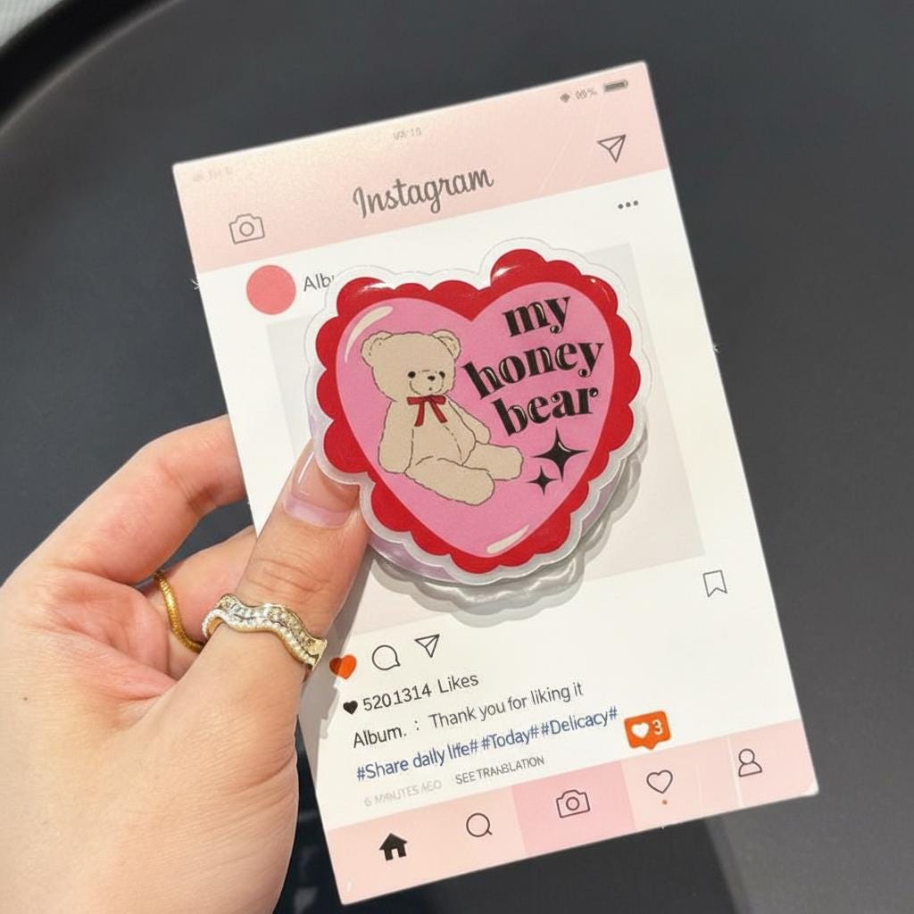 🧸 My Honey Bear MagSafe Phone Grip – Heart-Shaped Bear Magnetic Holder for Phones & E-Readers