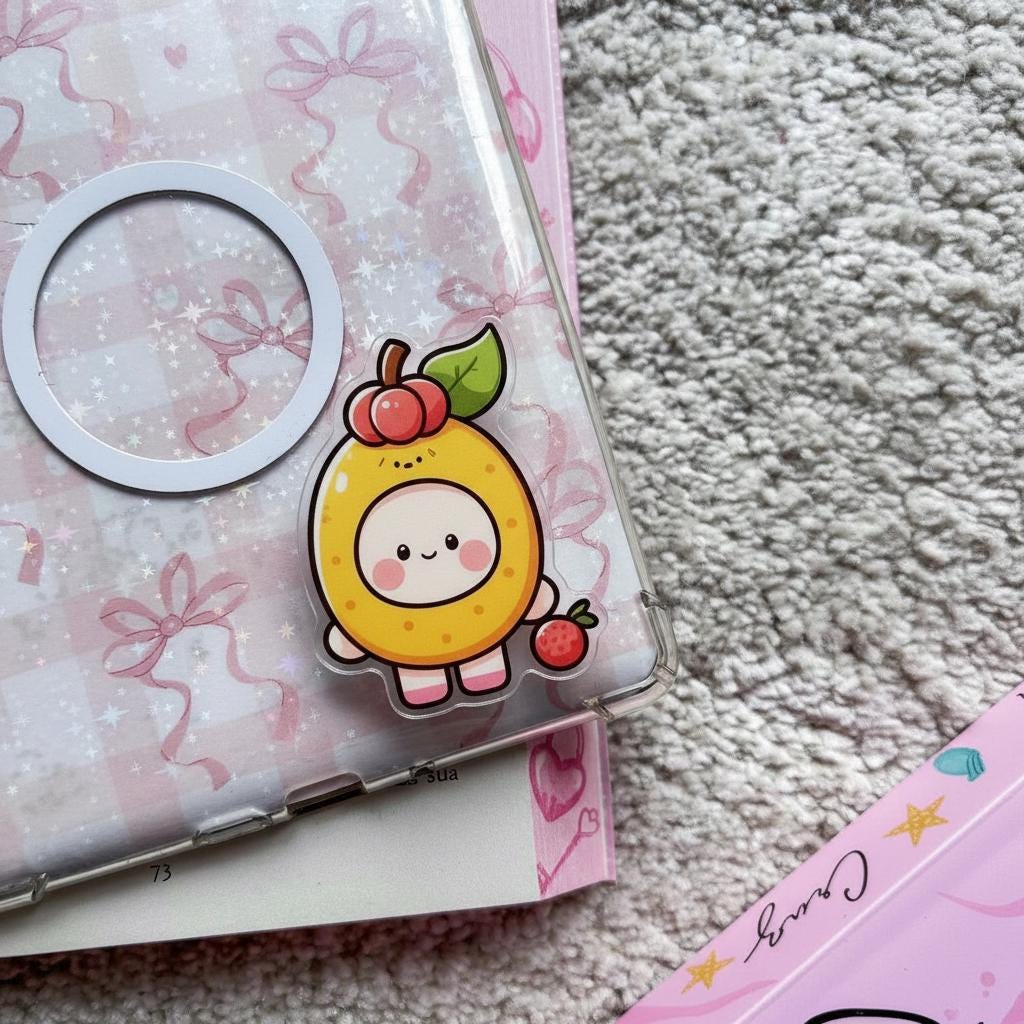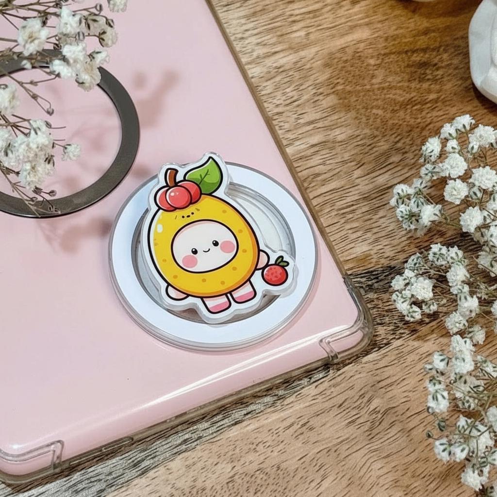 Add a fruity twist to your phone style with this Lychee Hood Girl MagSafe grip, featuring a charming character in a playful lychee-inspired hood. This adorable cartoon magnetic popgrip blends kawaii aesthetics with everyday functionality, making it perfect for anime fans, nature lovers, and anyone who enjoys quirky accessories that stand out.