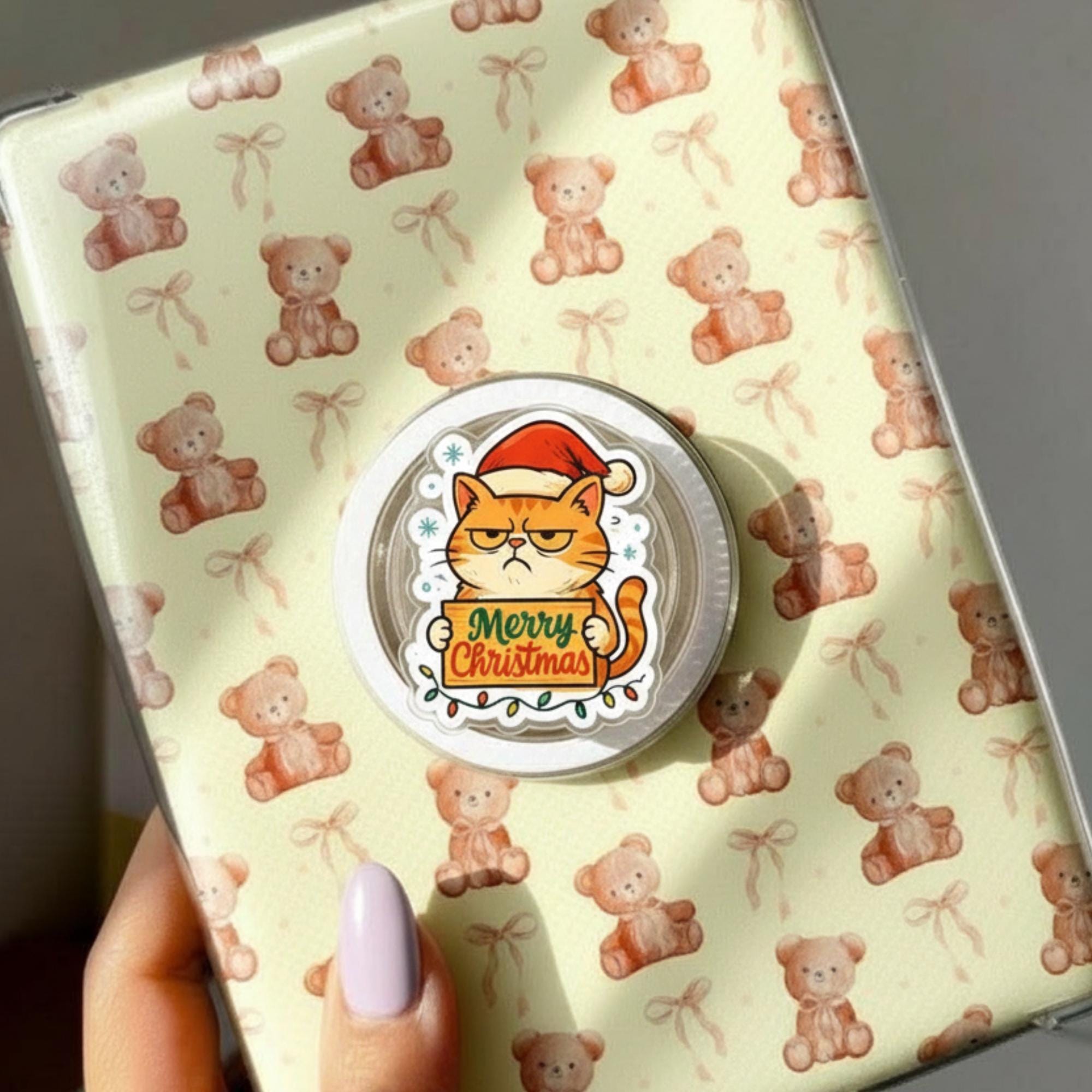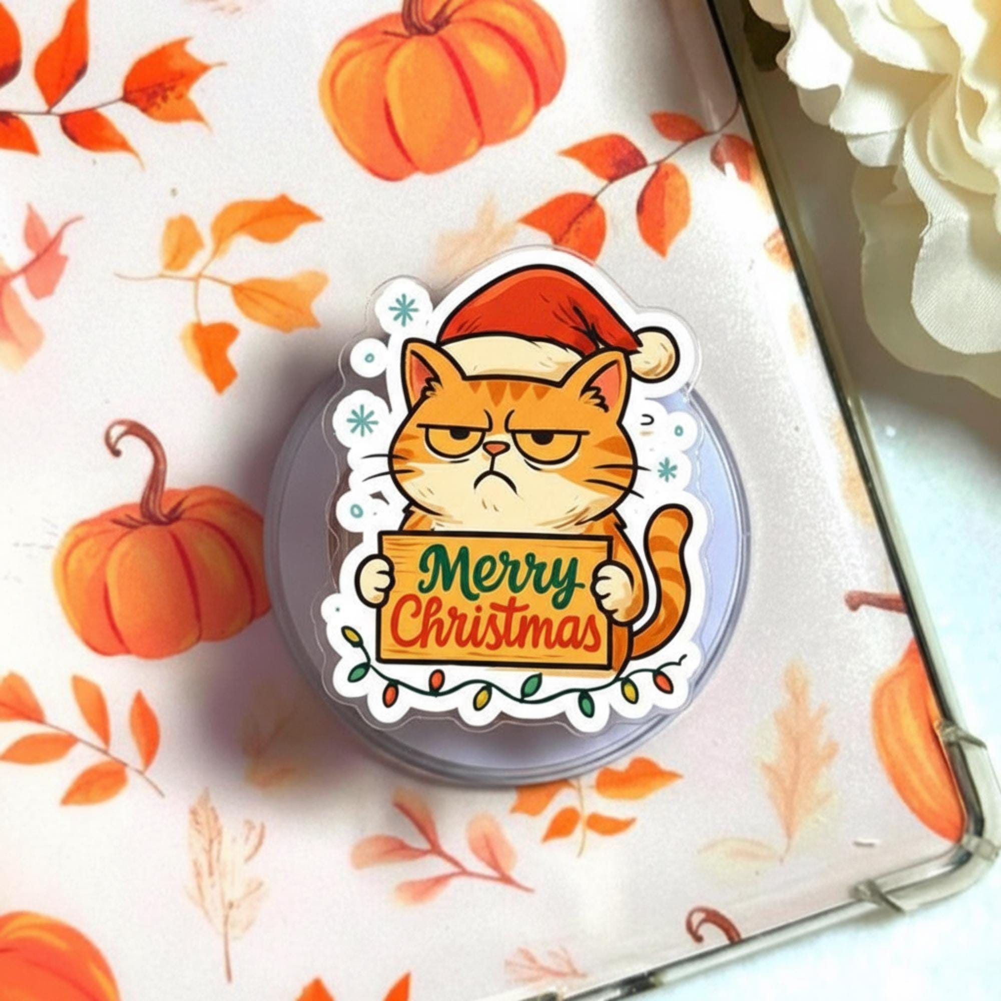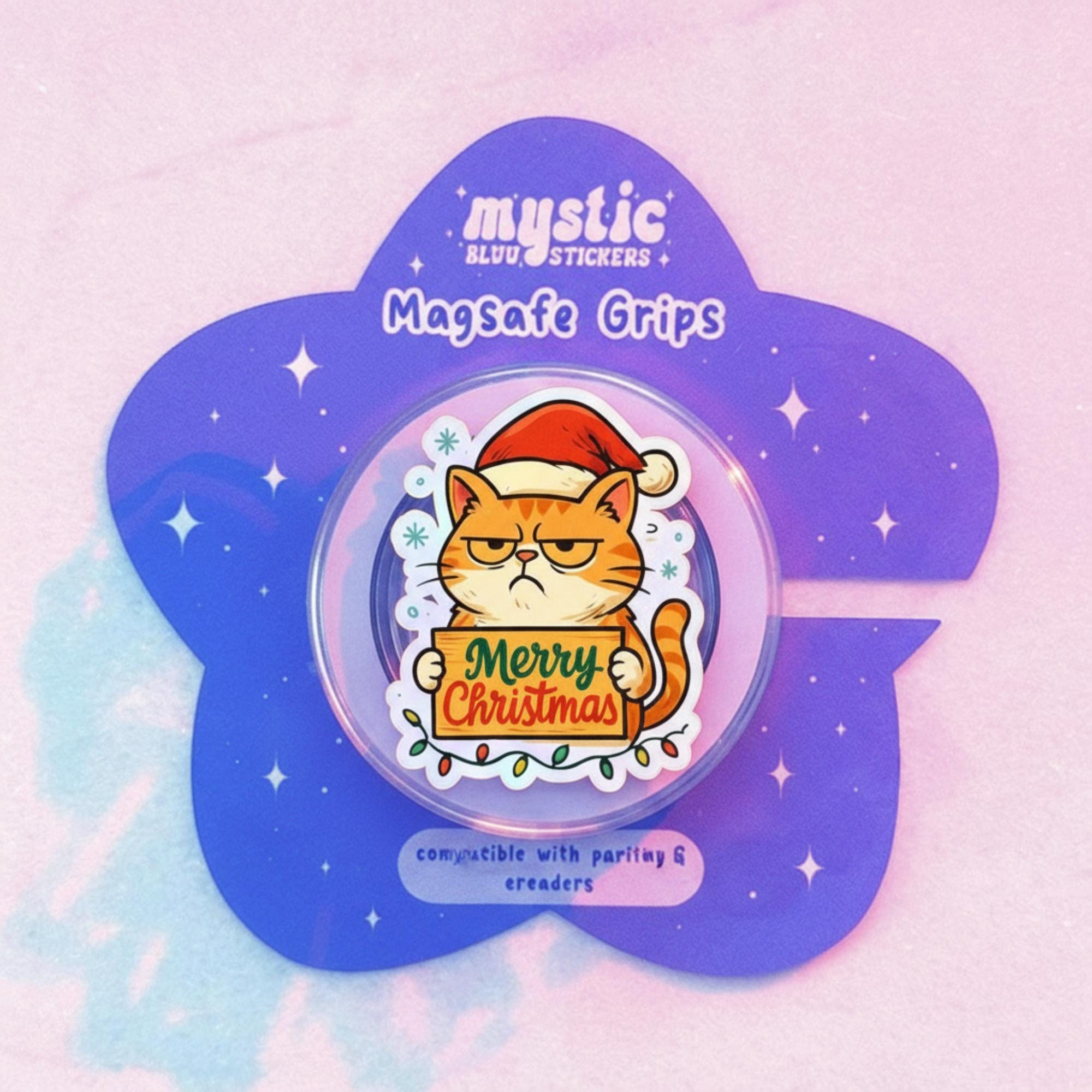 🎁 Add some festive cheer to your phone with this Merry Christmas Cat Phone Grip! Featuring a cute cat wearing a Santa hat and holding a Christmas gift, this grip is the perfect accessory for the holiday season. The charming design is paired with a secure magnetic base, making it both functional and adorable. Ideal for those who love quirky, seasonal accessories, this phone grip will bring a touch of holiday spirit wherever you go!