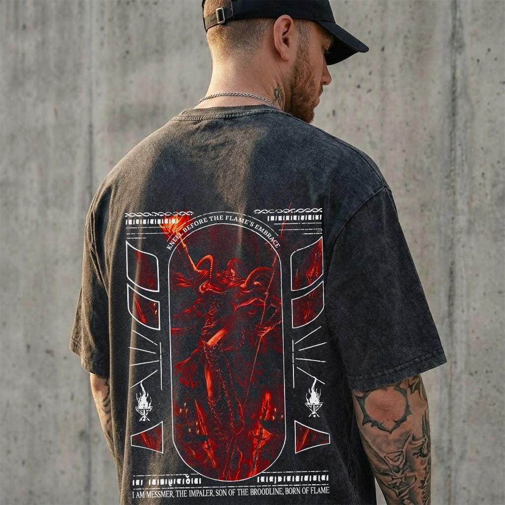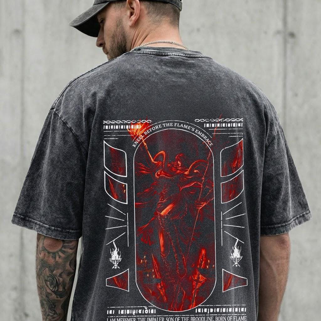 Messmer The Impaler 22.10 Elden Ring Retro Vintage Unisex Oversize Anime Manga Acid Washed Heavyweight Cotton T-shirt, Gaming gift
