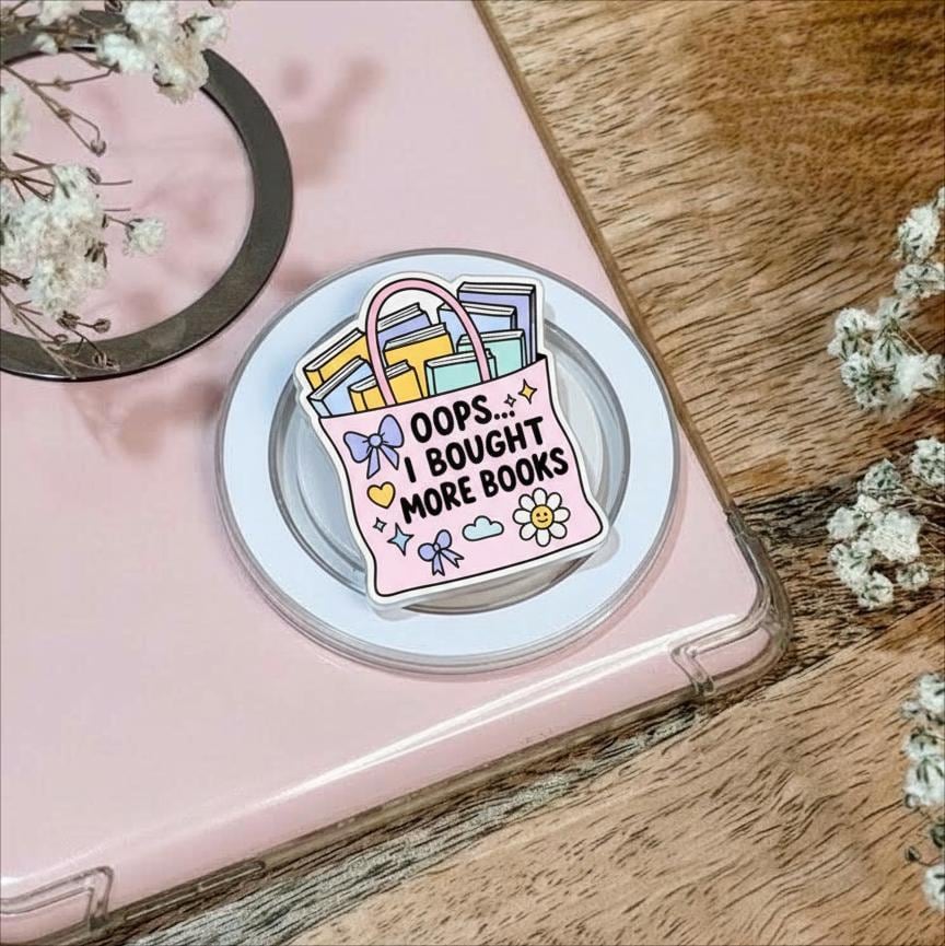 📚🛍️ Oops I Bought More Books MagSafe Phone Grip – Cute Book Tote Magnetic Stand | Funny Reader Accessory | Gift for Book Lovers