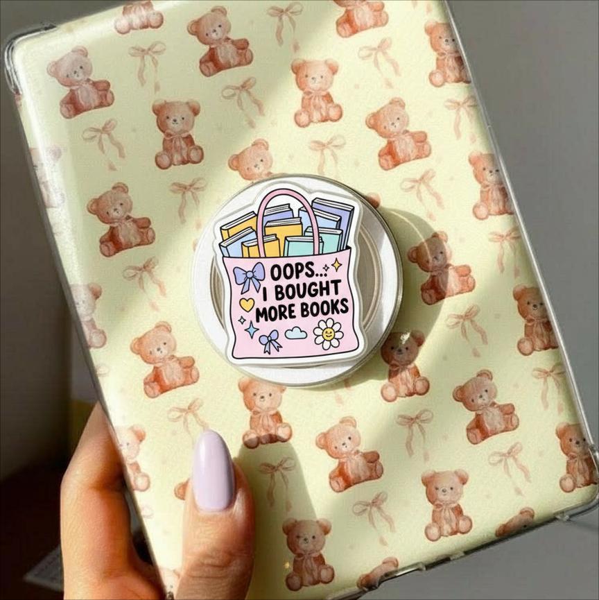 Celebrate your book-buying habits with this adorable Oops I Bought More Books MagSafe Phone Grip! Featuring a pastel tote overflowing with books and surrounded by cute icons like bows, hearts, and stars, this grip is perfect for readers who just can’t resist adding one more to their shelf.