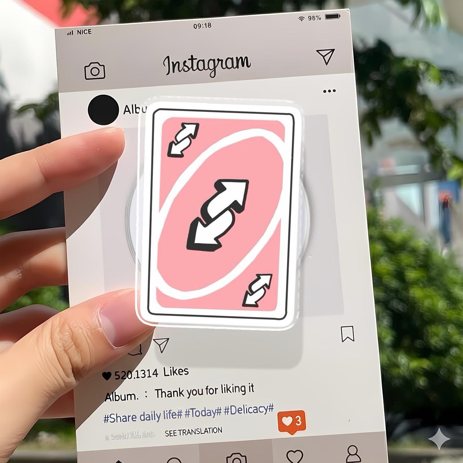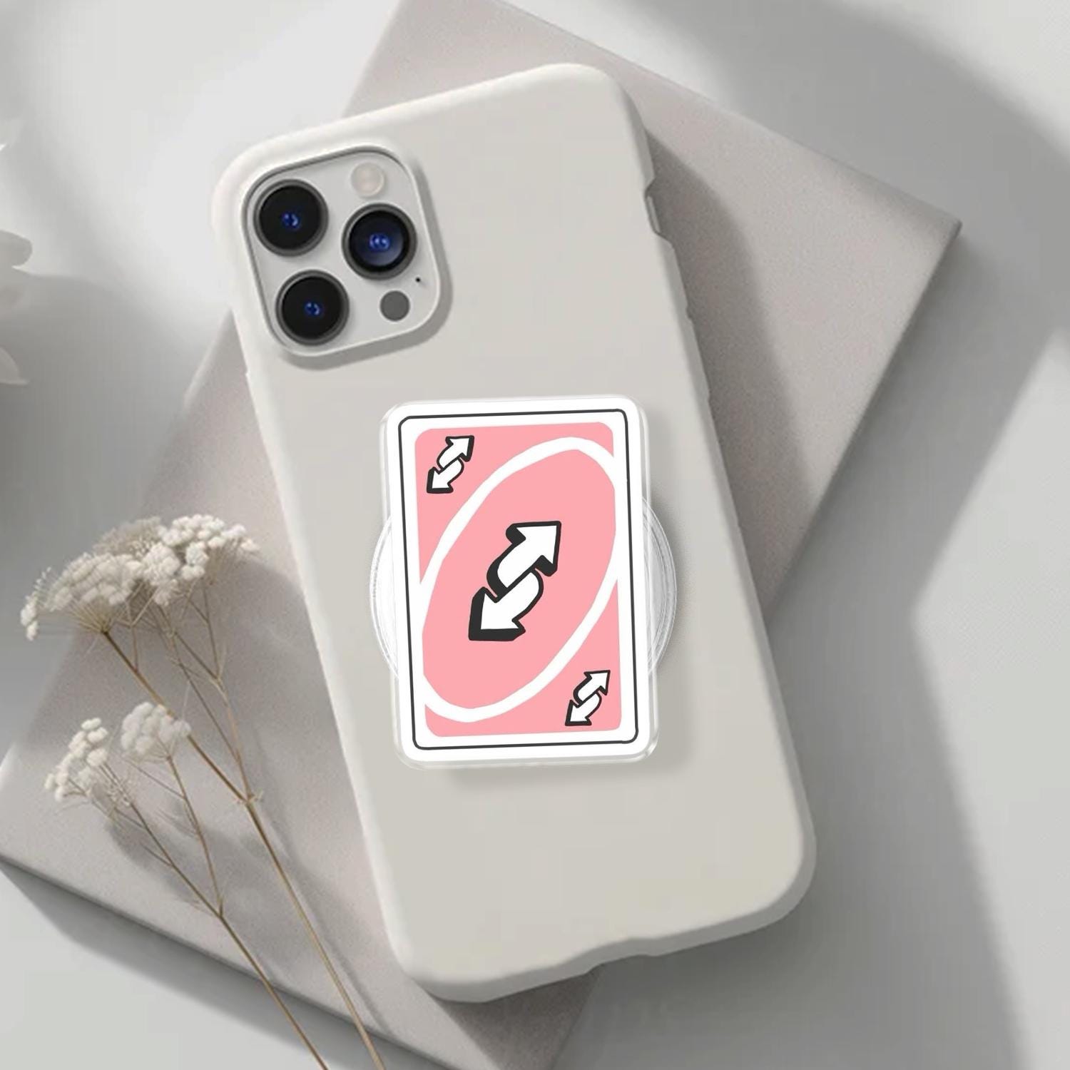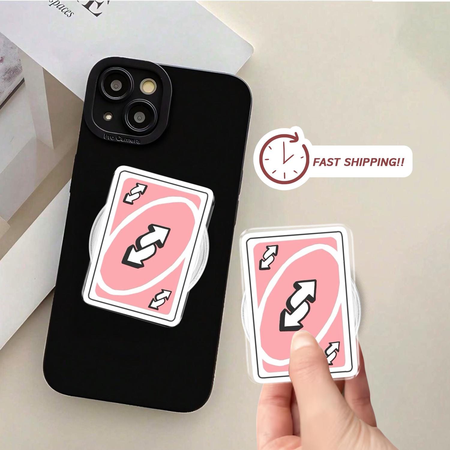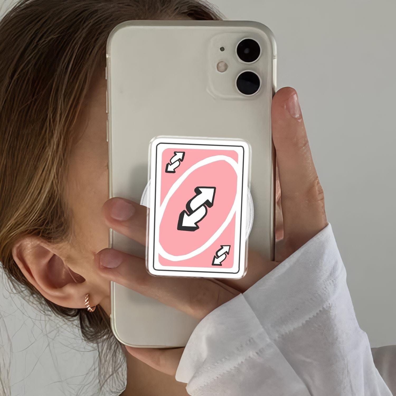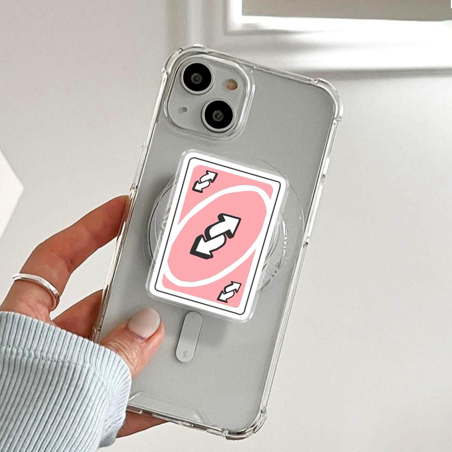 Aesthetic Pink Uno Reverse Card Phone Holder, Iconic Meme Pop Culture Illustration, Universal Magnetic & Adhesive Phone Stand