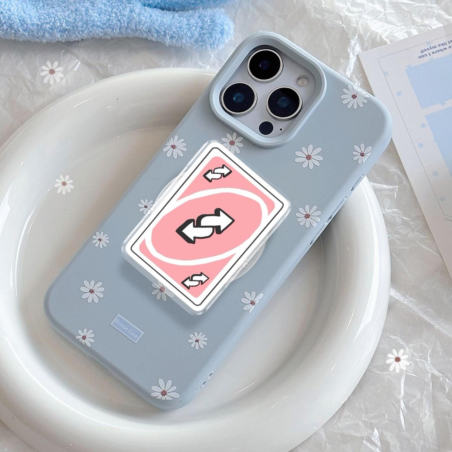 Pink Uno Reverse Phone Holder, Aesthetic Meme Phone Grip, Funny Uno Card Stand, Cute Daisy Blue Case Accessory, Y2K Retro Gamer Gift for Her