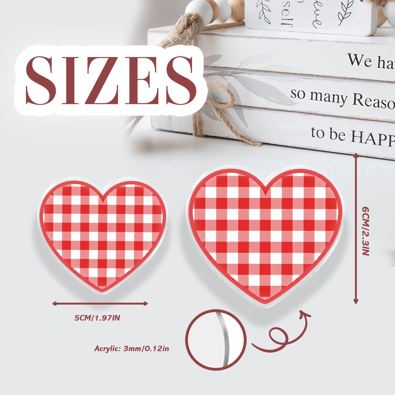 Design: Custom heart-shaped die-cut featuring a classic red gingham pattern.