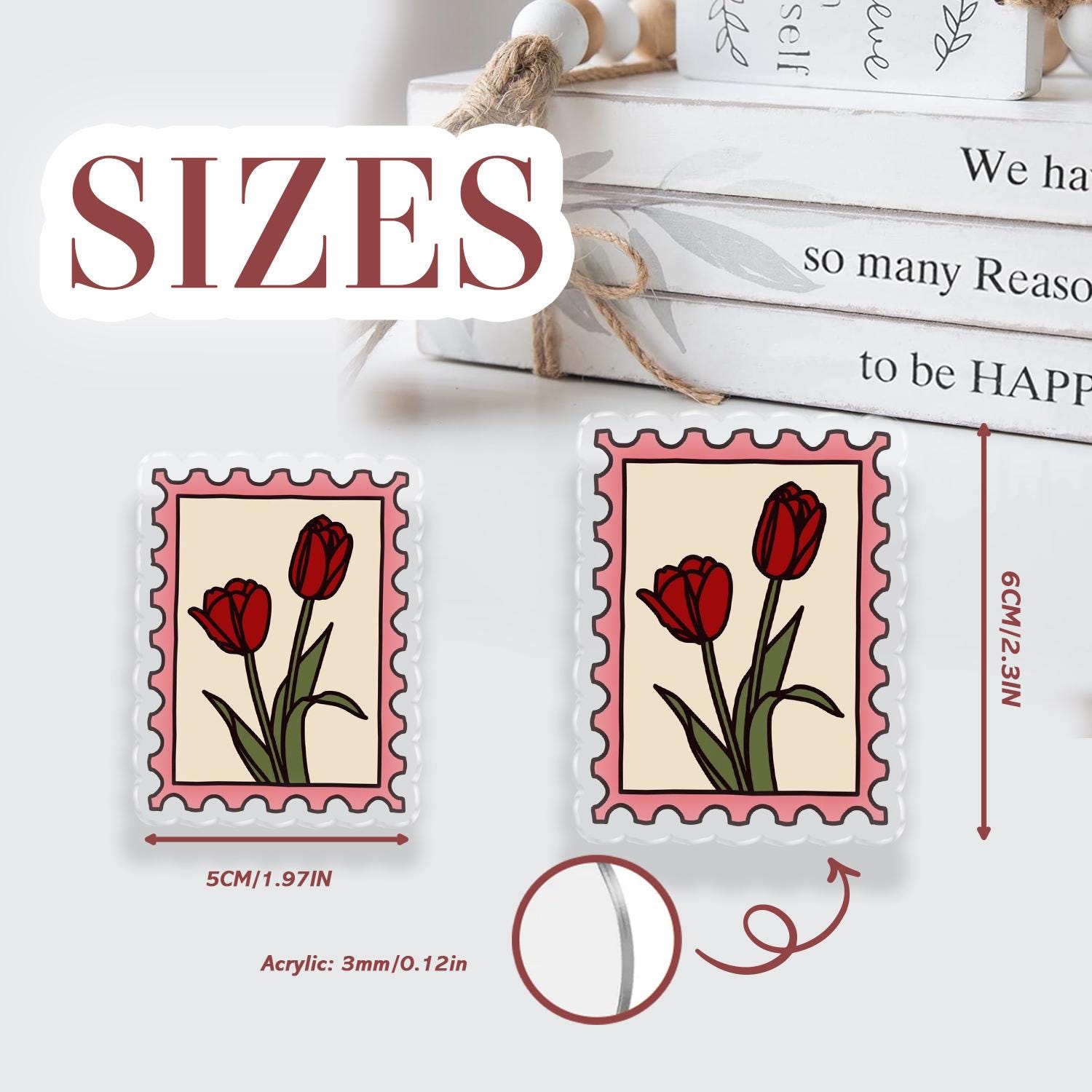 Aesthetic Red Tulip Postage Stamp Phone Holder, Retro Floral Illustration, Universal Magnetic & Adhesive Phone Stand