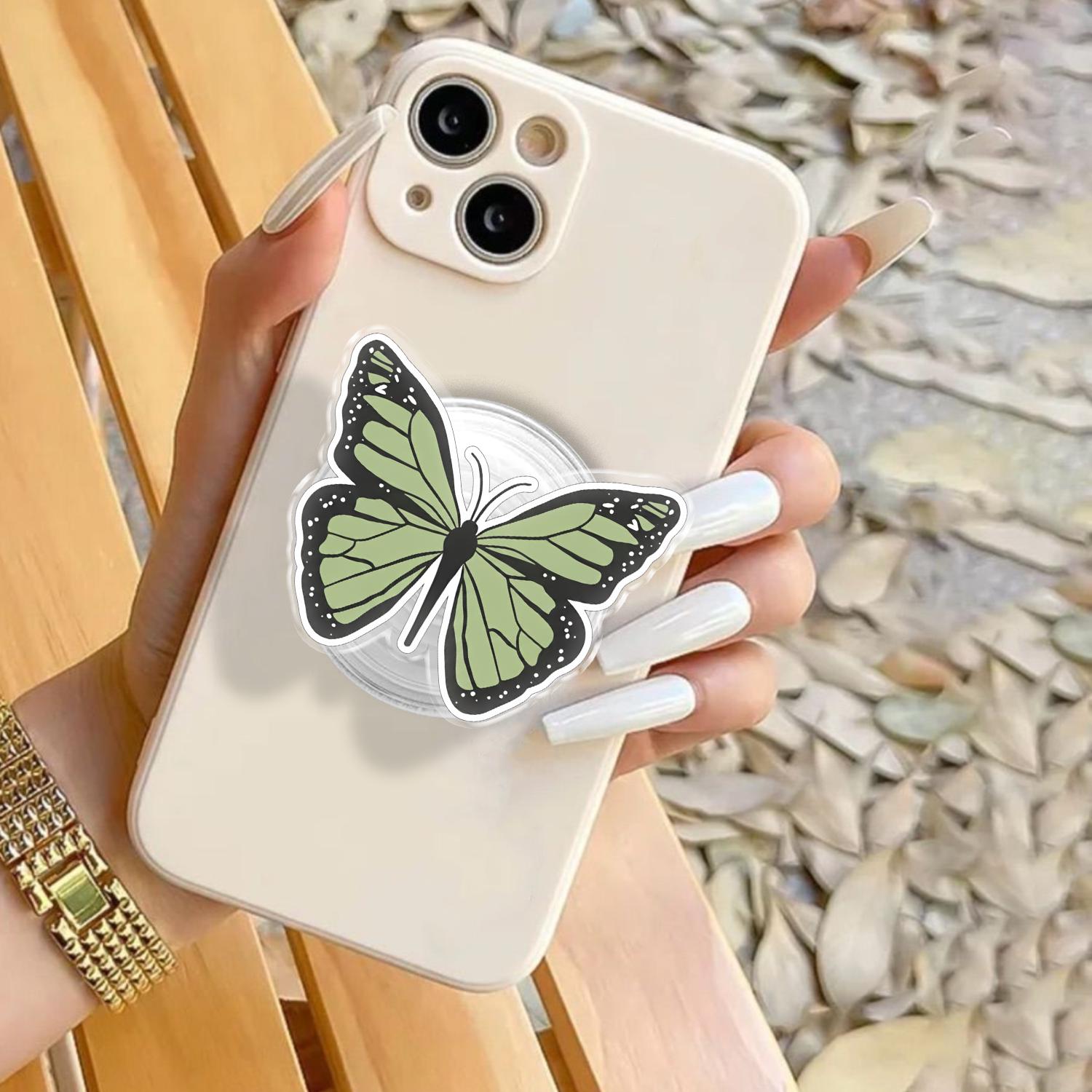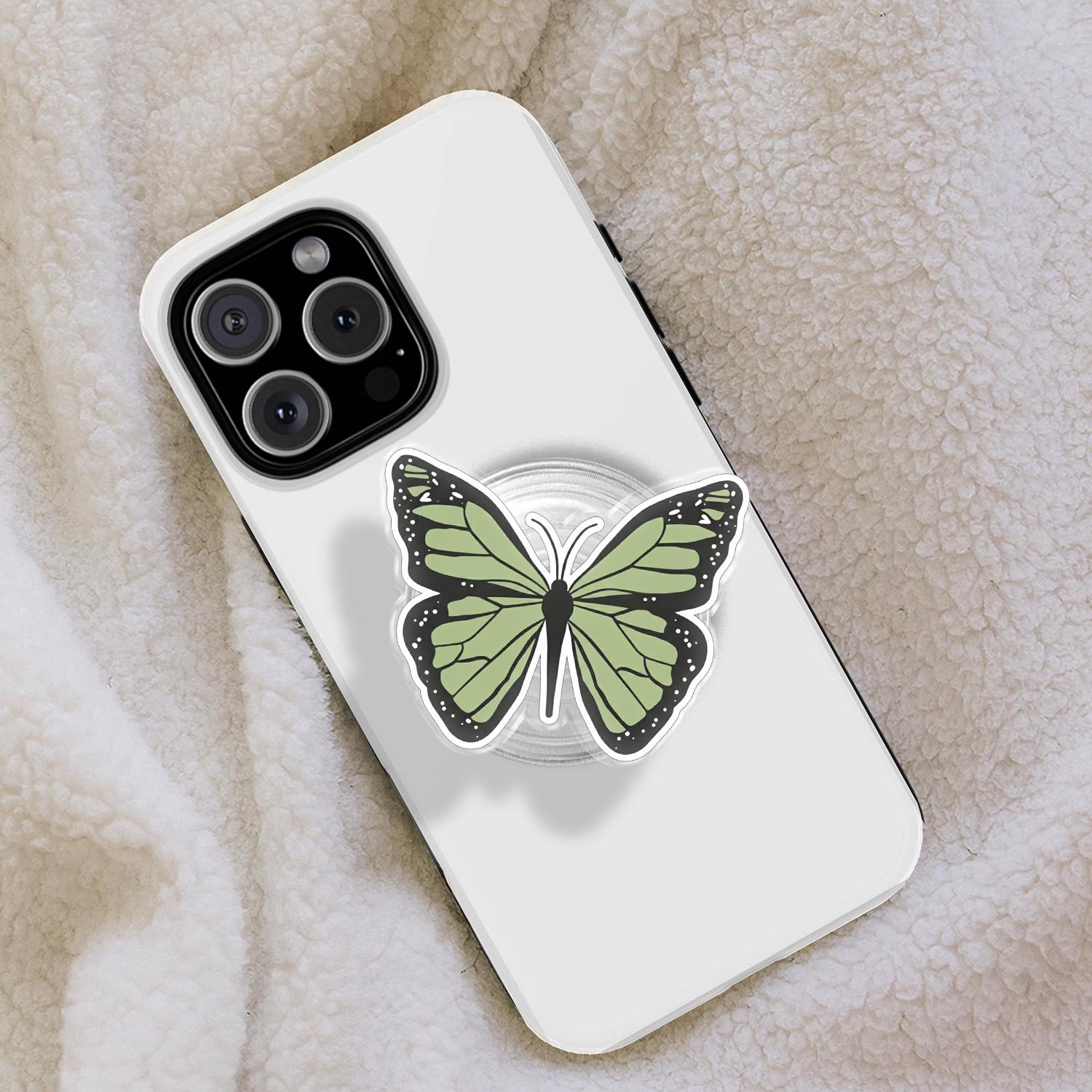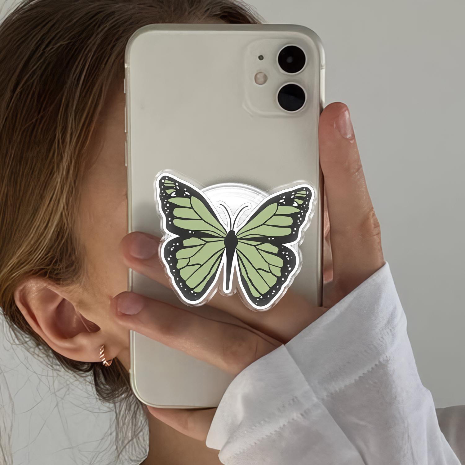 Detailed Butterfly Artistry: This phone grip features a high-definition illustration of a delicate butterfly in a calming sage green hue, capturing the intricate patterns and elegant curves of natural wings.