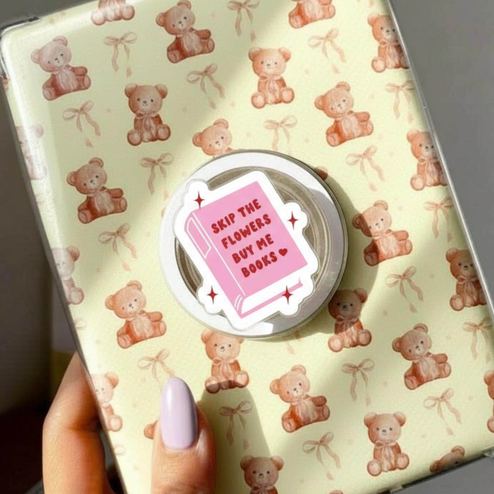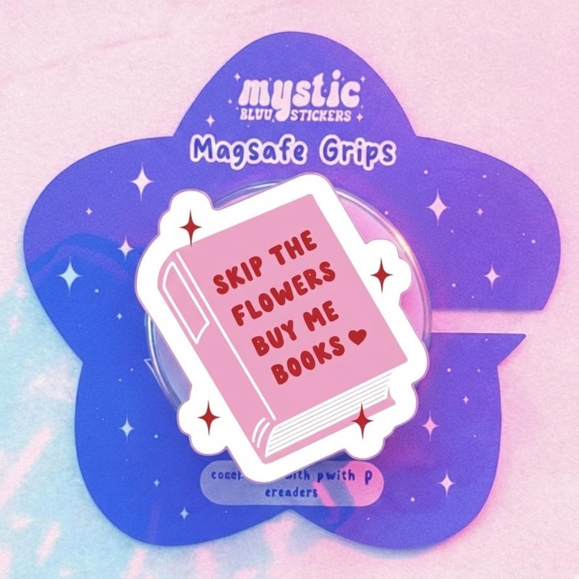Skip the Flowers Buy Me Books Magsafe Phone Grip, Kawaii Bookish Magnetic Phone Stand, Cute Book Lover Phone Holder, Bookworm Gift Accessory