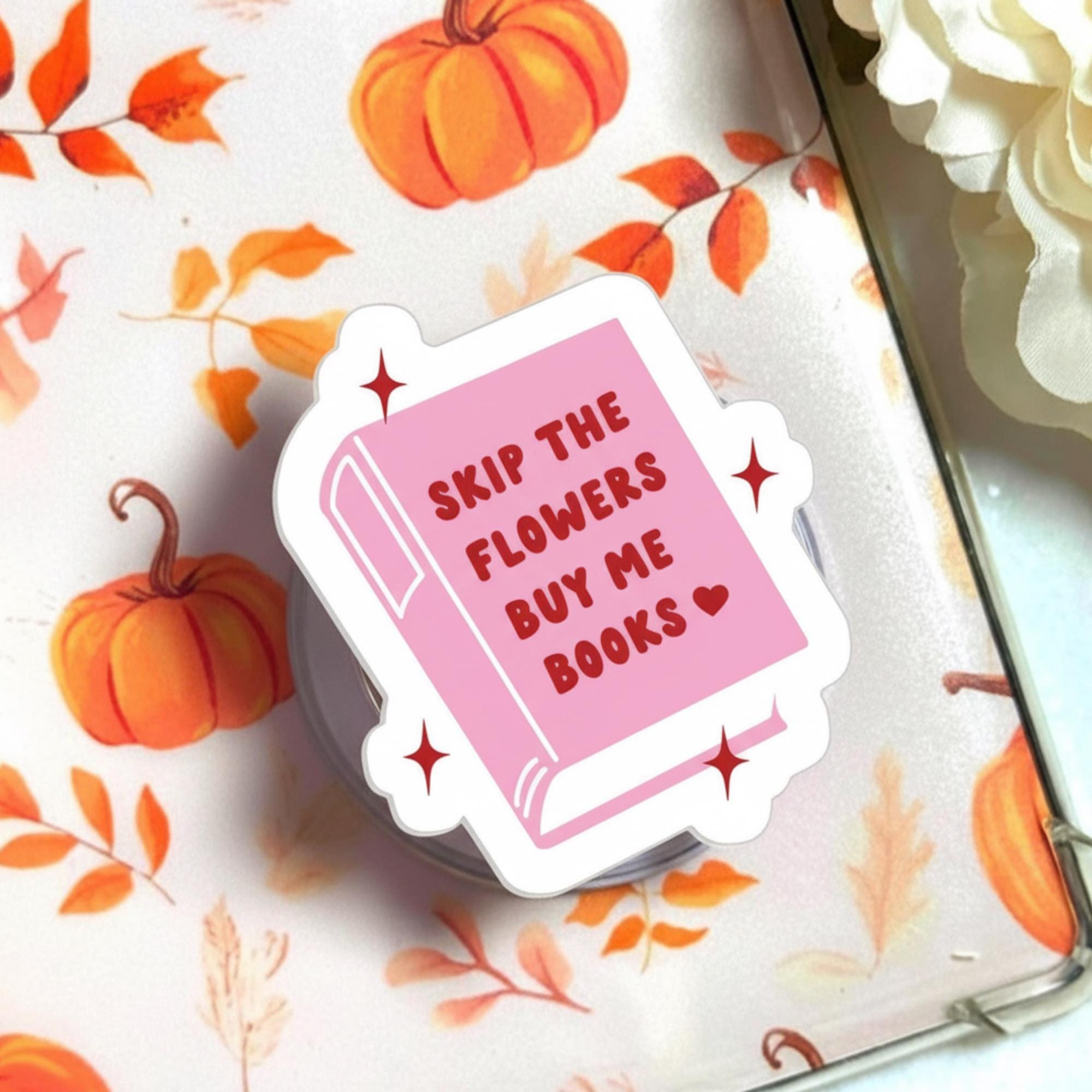 ✨ Add a dash of literary charm to your phone with this Skip the Flowers Buy Me Books Phone Grip! Featuring a cute pink book design with a playful quote, this magnetic pop socket is perfect for book lovers and bibliophiles. Whether you're reading, texting, or just looking to add some quirky personality to your phone, this phone grip will definitely make a statement!