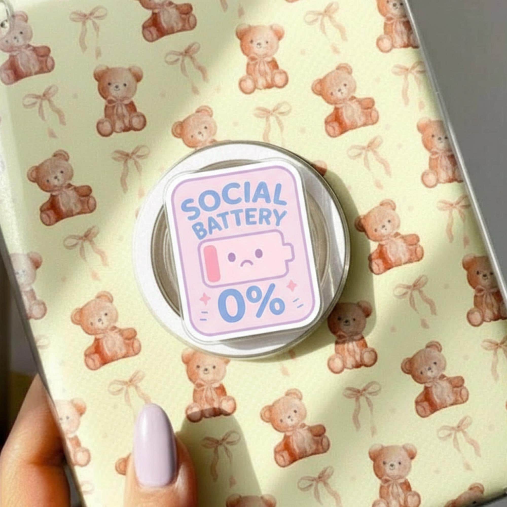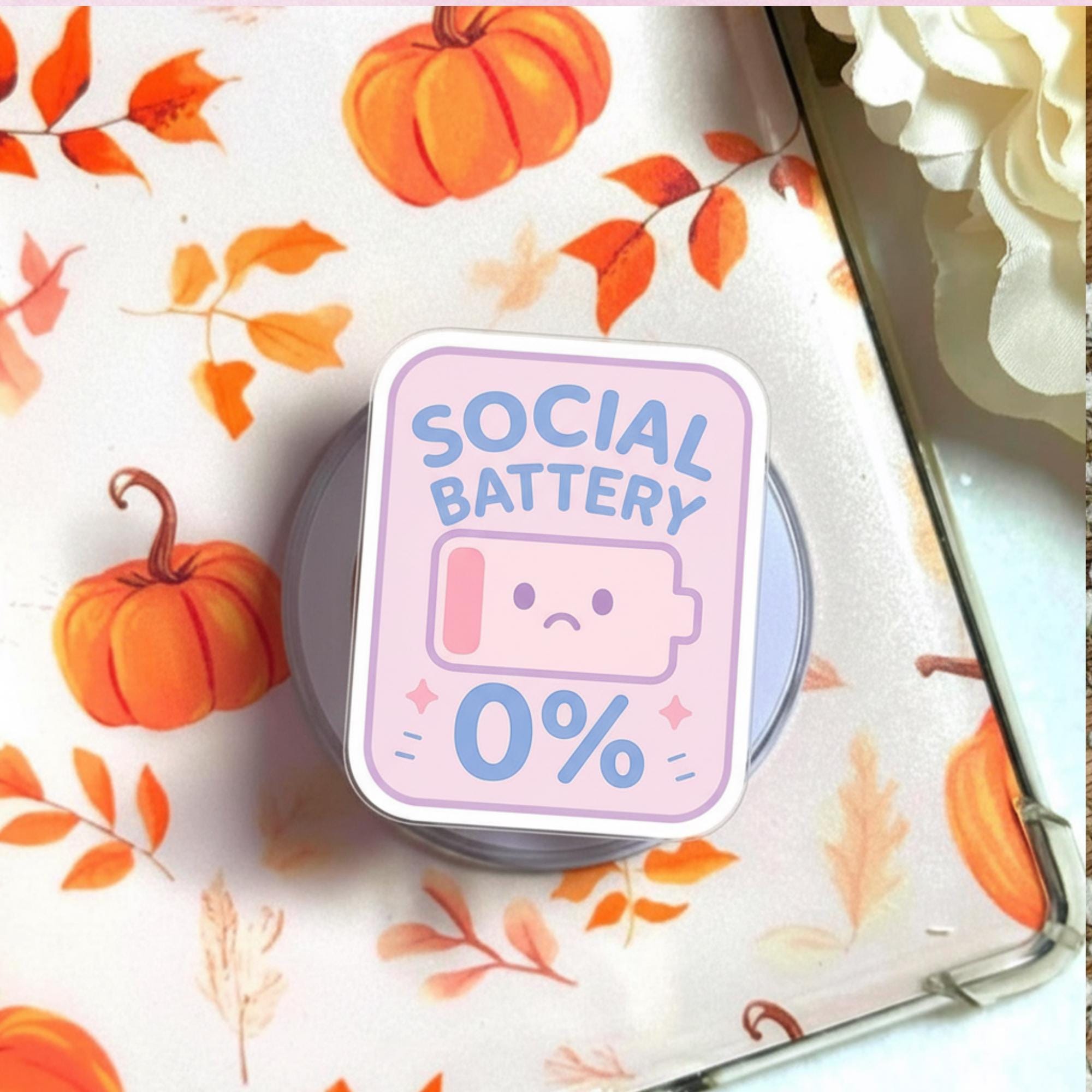 💖 Social Battery 0% Phone Grip – A perfect accessory for anyone who feels like their social battery is running low! This cute and quirky phone grip features the popular "Social Battery 0%" design, making it a great conversation starter and a must-have for introverts or anyone who enjoys a little humor.