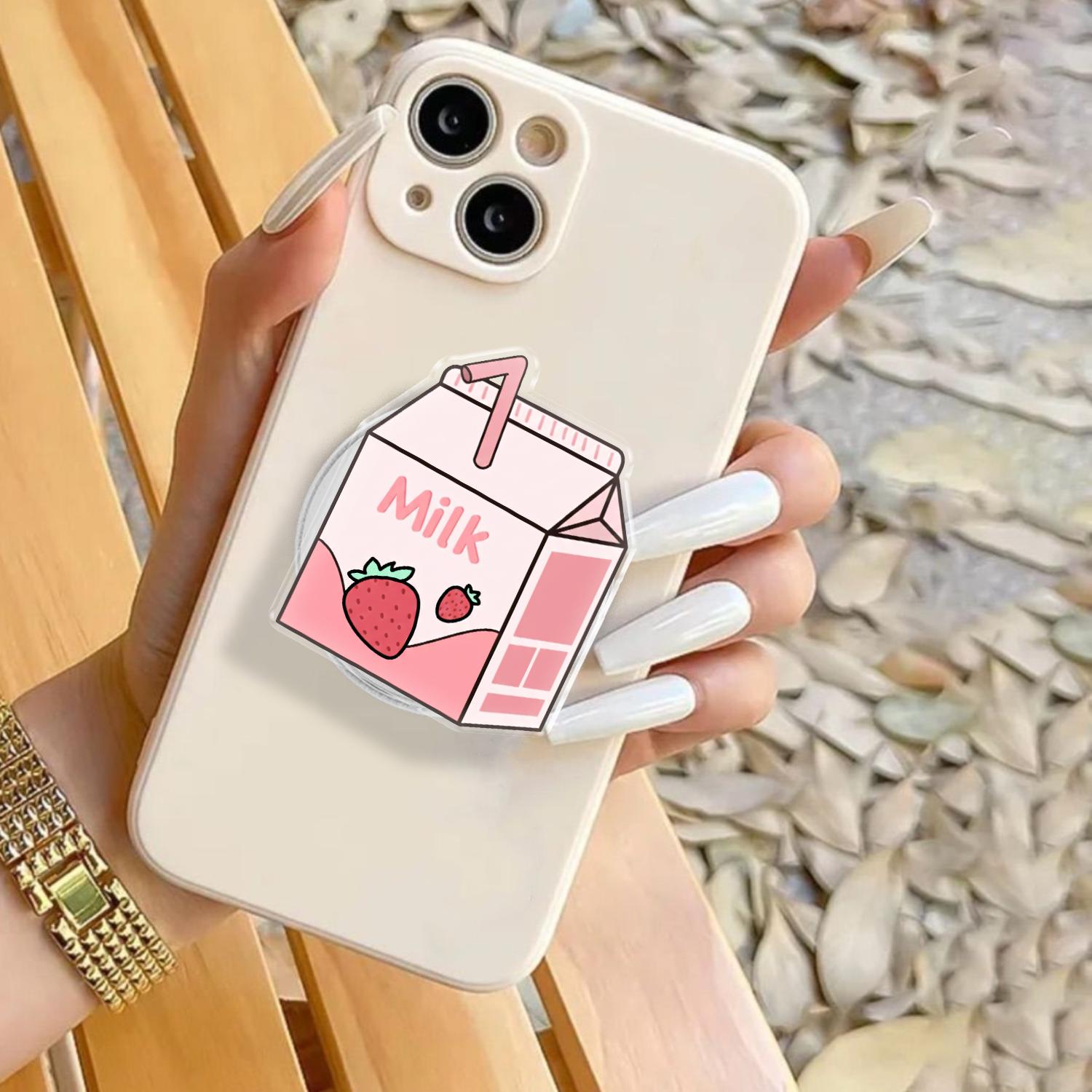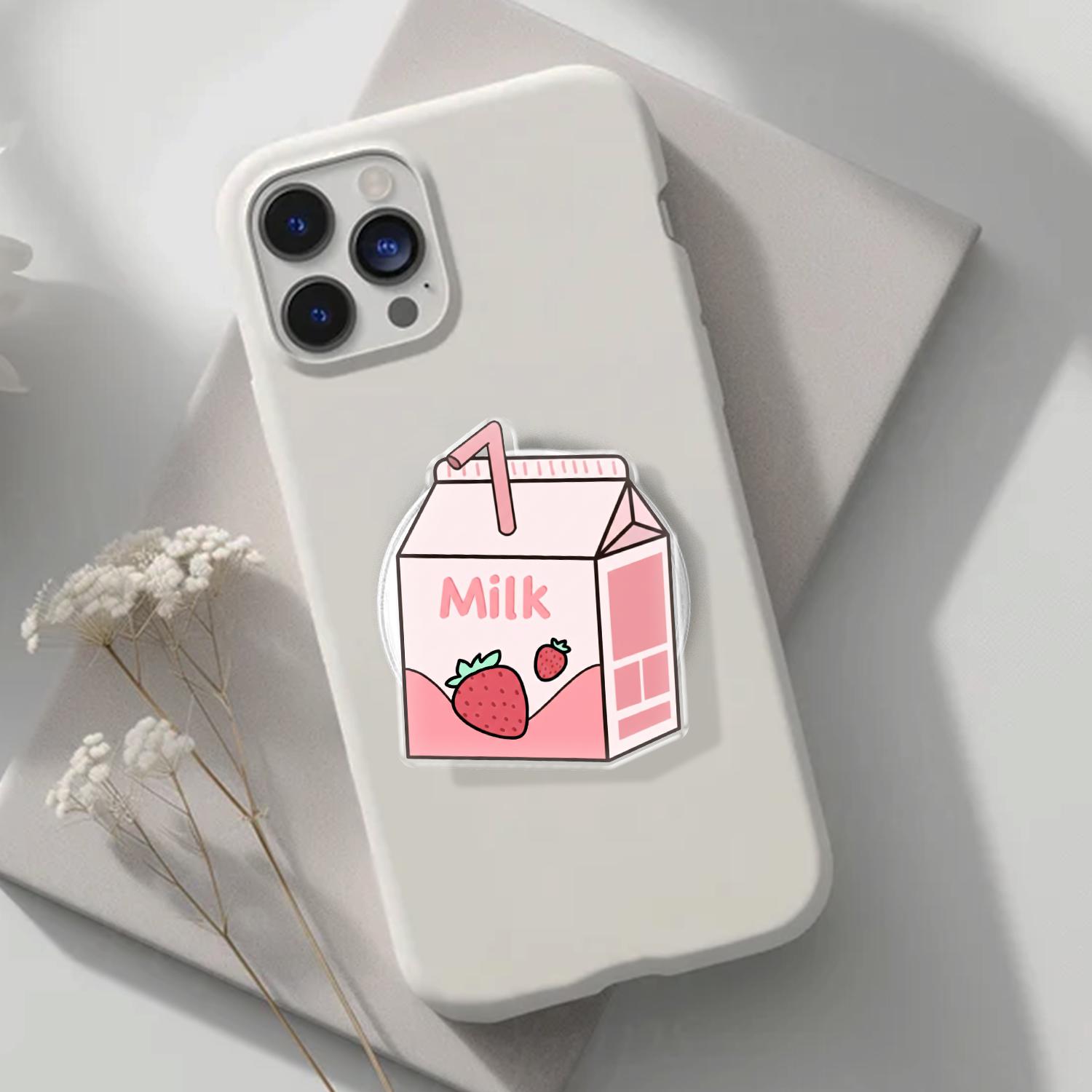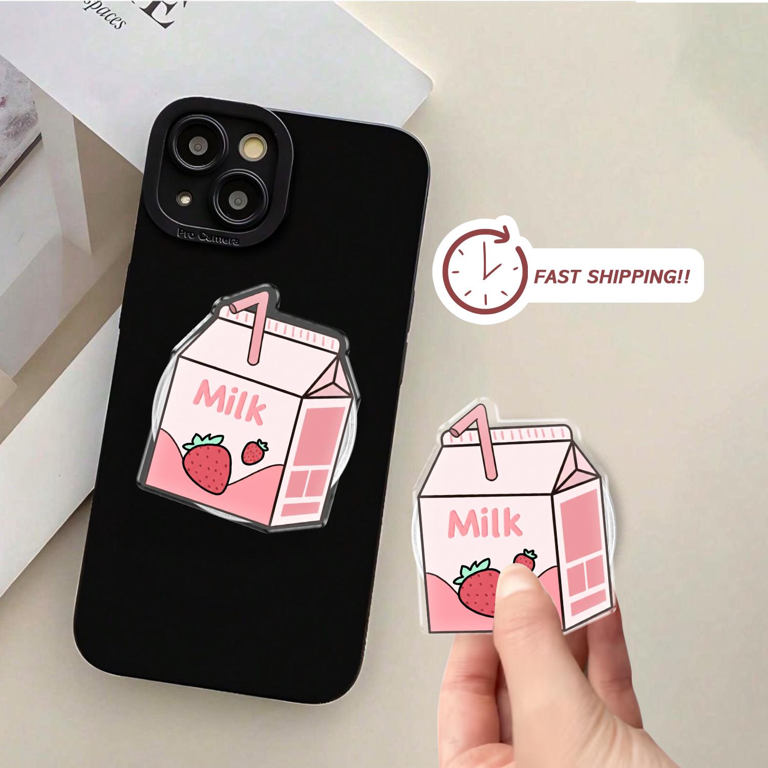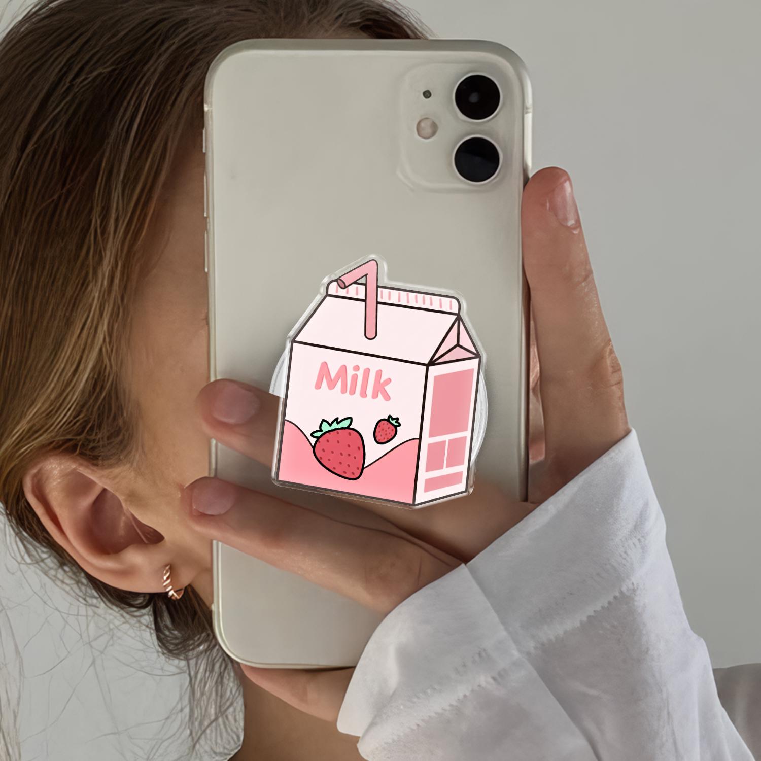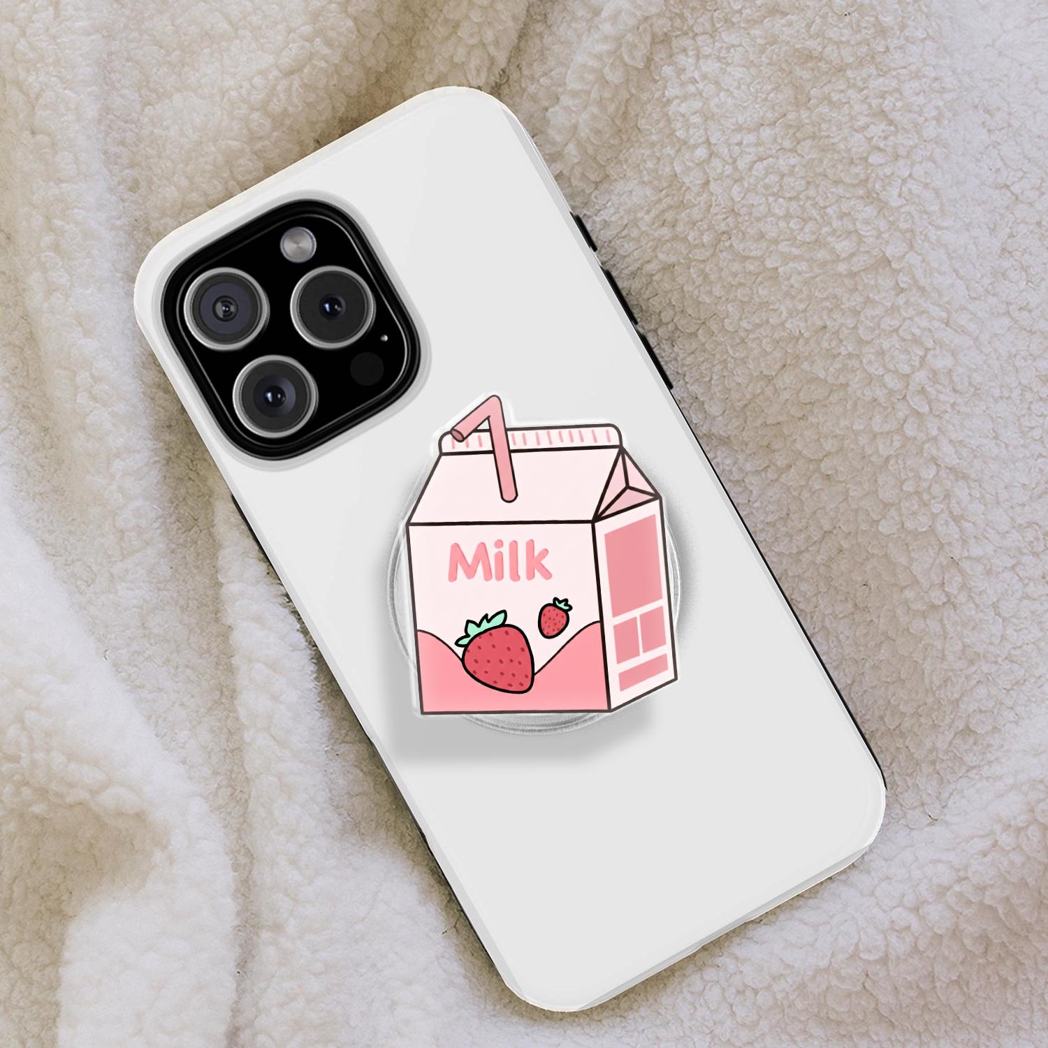 Charming Kawaii Design: This phone grip features a high-definition illustration of a classic mini strawberry milk carton, complete with a tiny straw and fresh berry graphics.