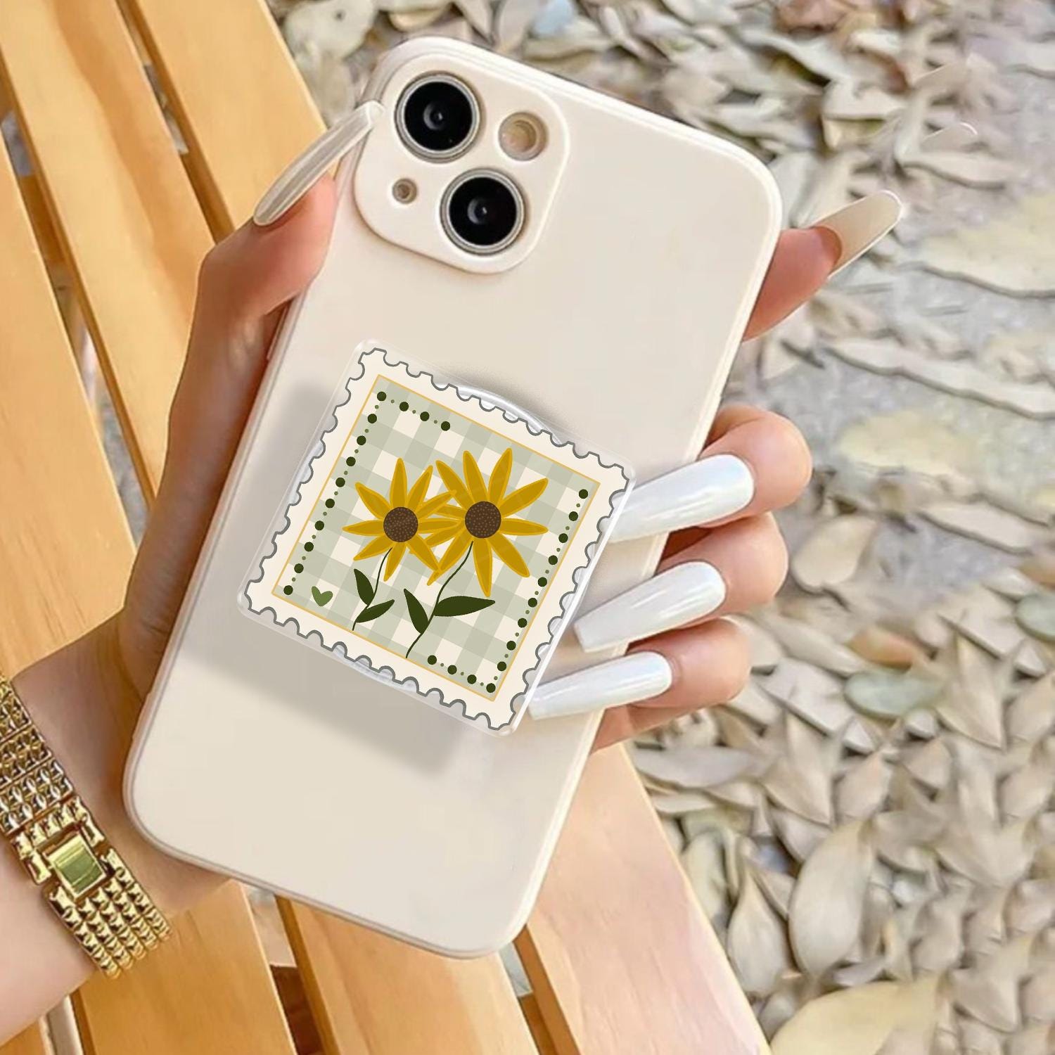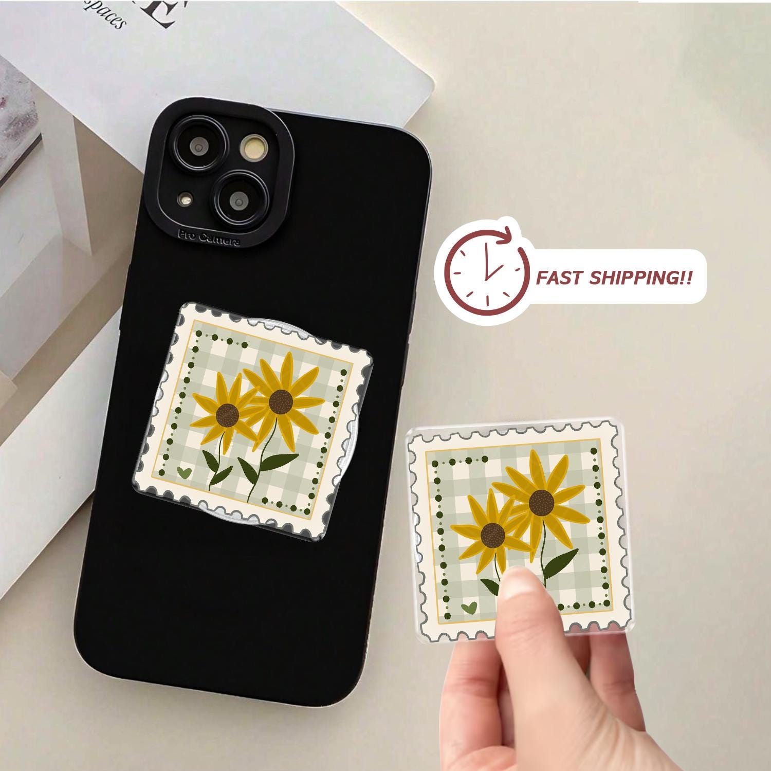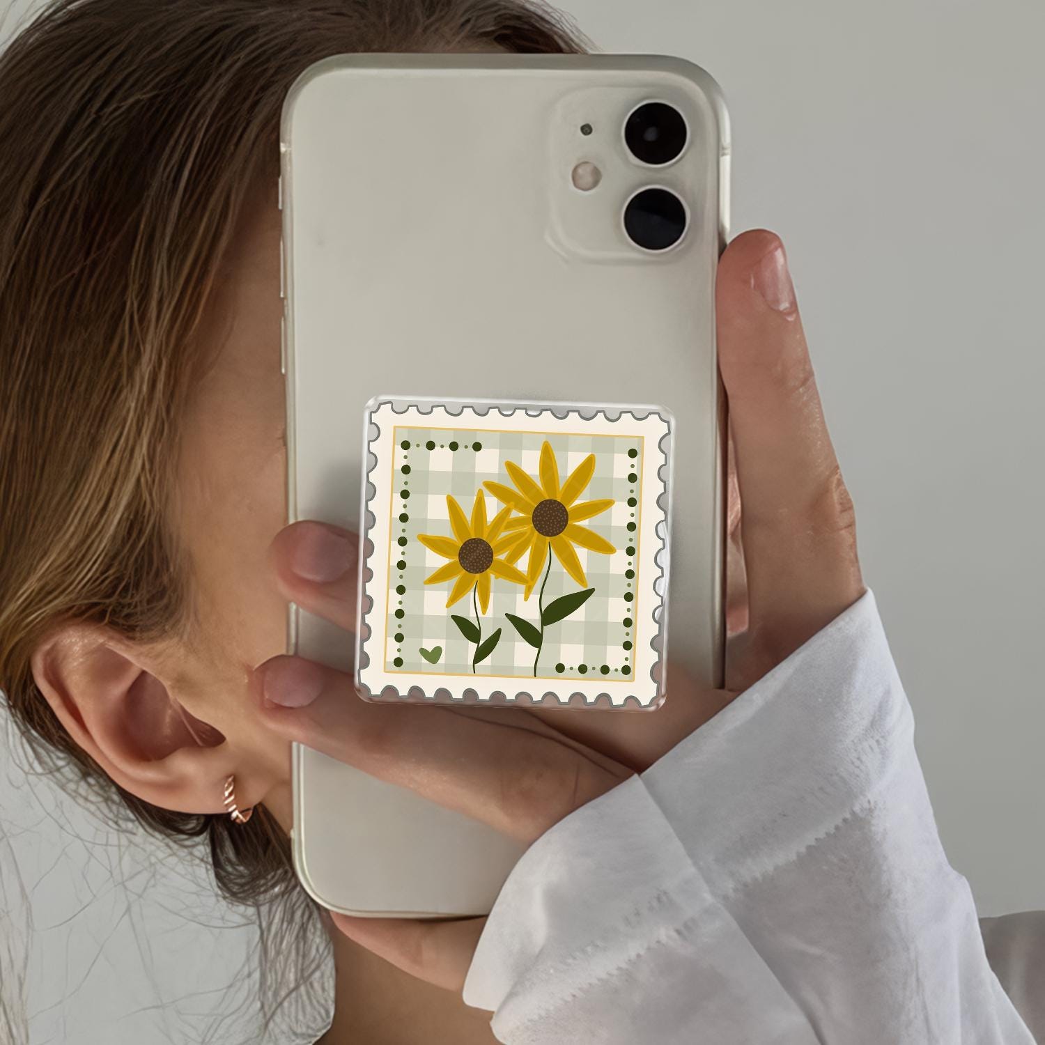 Vintage Flower Stamp Phone Holder,Aesthetic Floral Postage Grip, Retro Red Tulip Sunflower Stand, Cute Botanical Gift, Gingham Kindle Socket