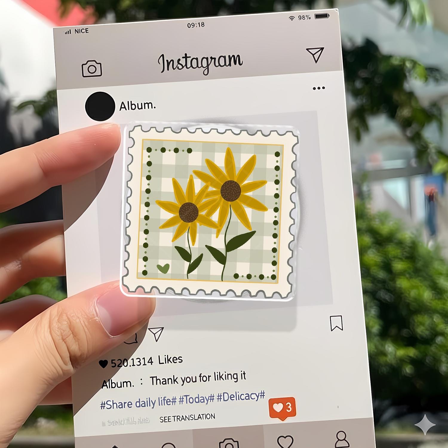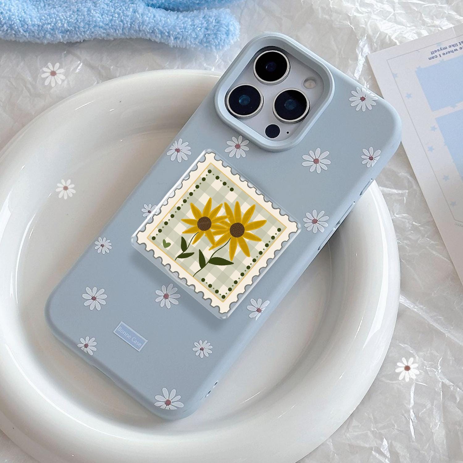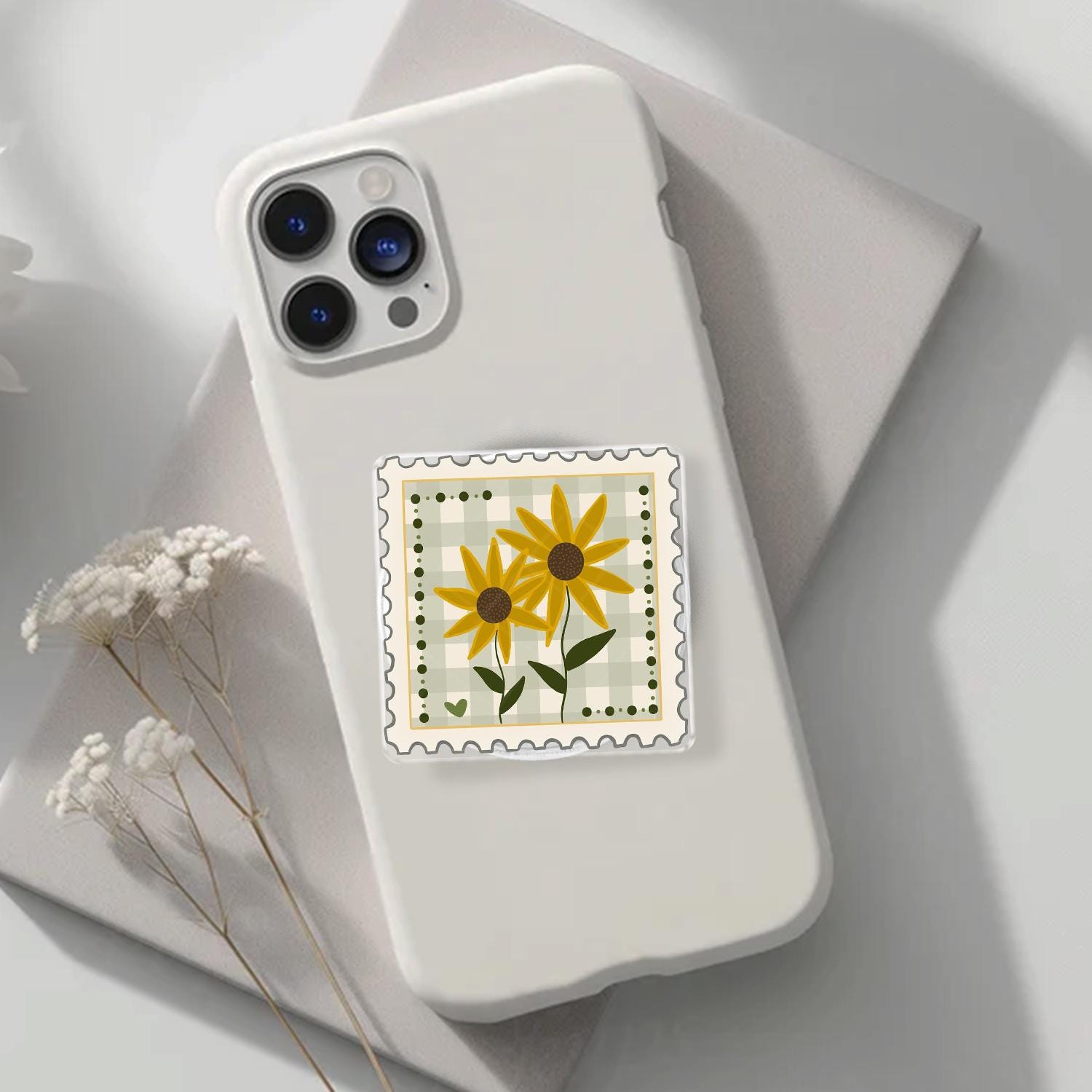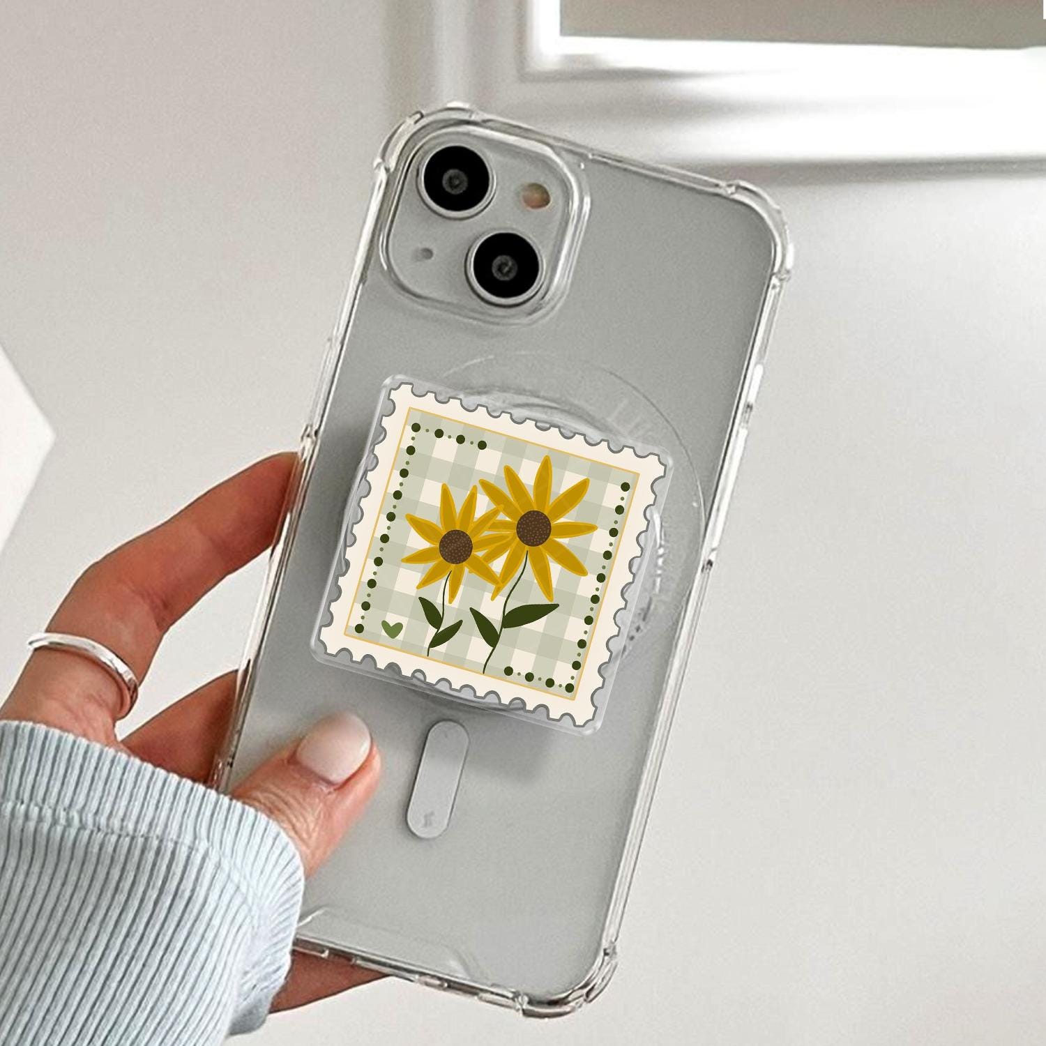 Vintage Flower Stamp Phone Holder,Aesthetic Floral Postage Grip, Retro Red Tulip Sunflower Stand, Cute Botanical Gift, Gingham Kindle Socket