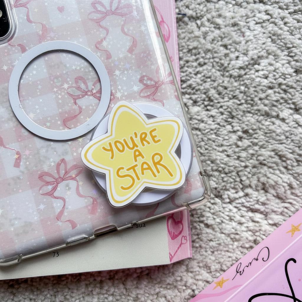 You’re a Star MagSafe Phone Grip – Yellow Star Magnetic Holder, Positive Popgrip for Phone & E-Readers, Emotional Kindle Popgrip